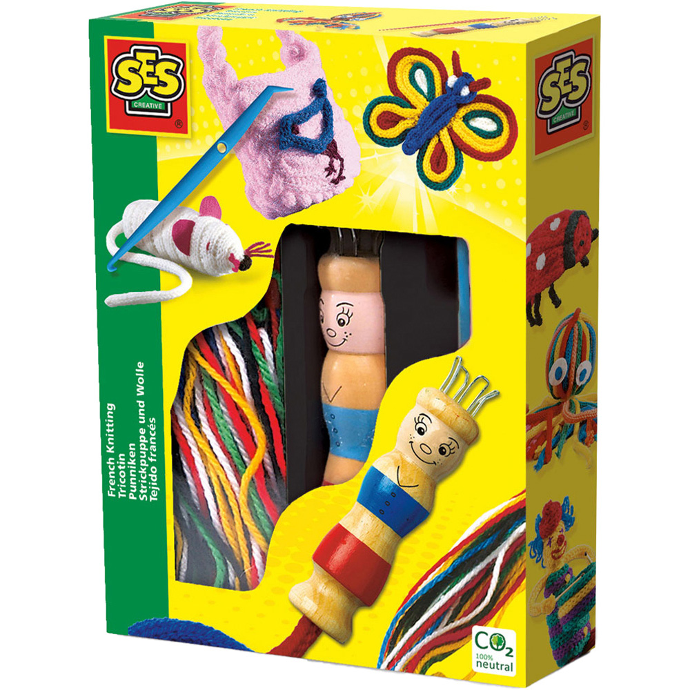 Discover the joy of creativity with the SES Creative French Knitting Set. This can be a great way for children to learn an old-fashioned skill of French Knitting, it is both fun and easy to do. This set contains an attractive wooden French knitting doll and an assortment of coloured thread. Follow the clear instructions and get knitting. Suitable for 5 plus years.