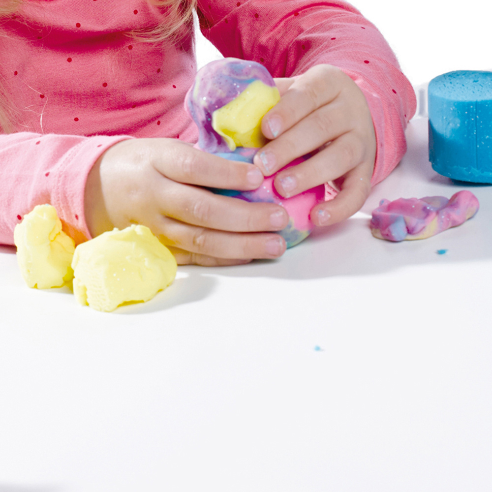 Let your child's artistic imagination wild with SES Creative Glitter Dough 4 Pack. Make the most beautiful dough creations with this cheerful dough. The dough is bright, and soft and can be used multiple times because of the resealable packaging and you get to enjoy hours of fun. Suitable for 2-plus years.