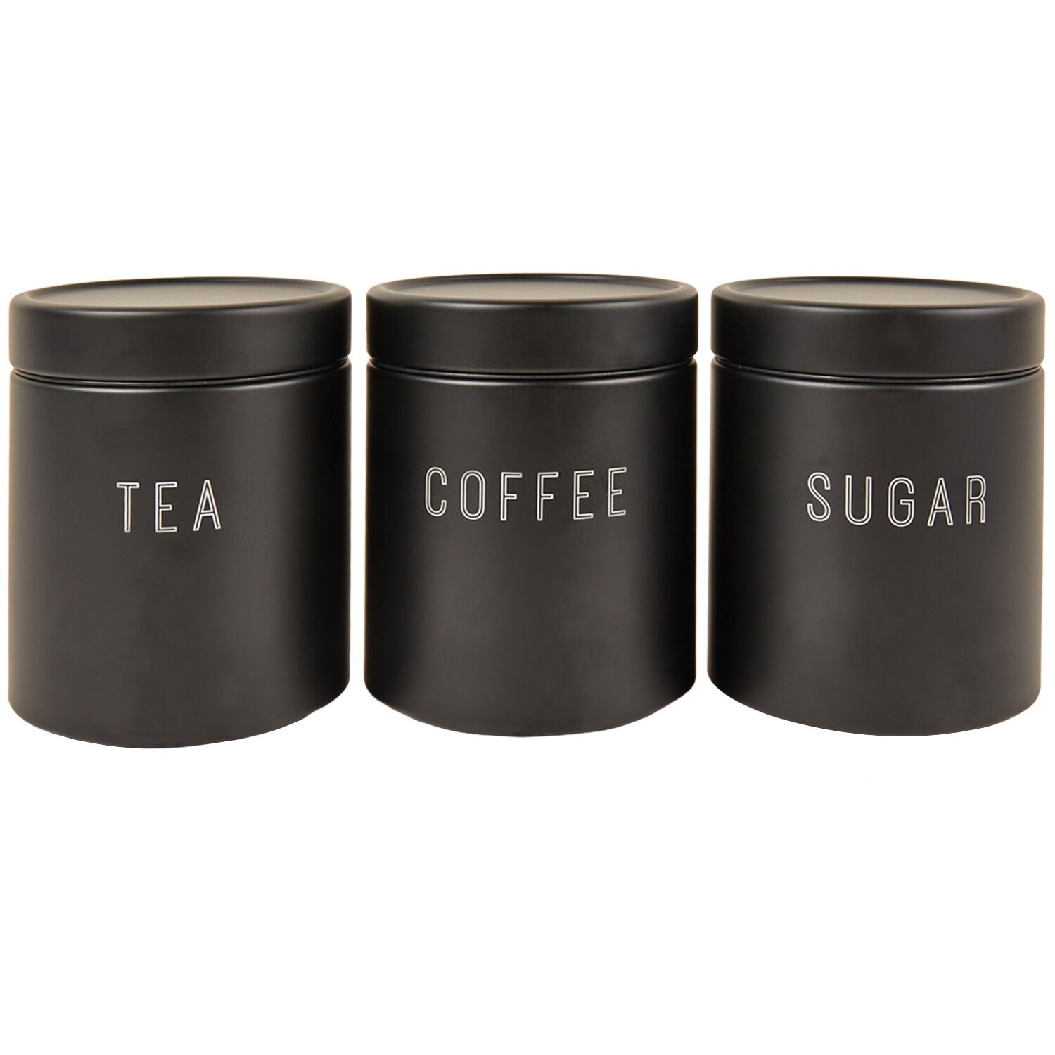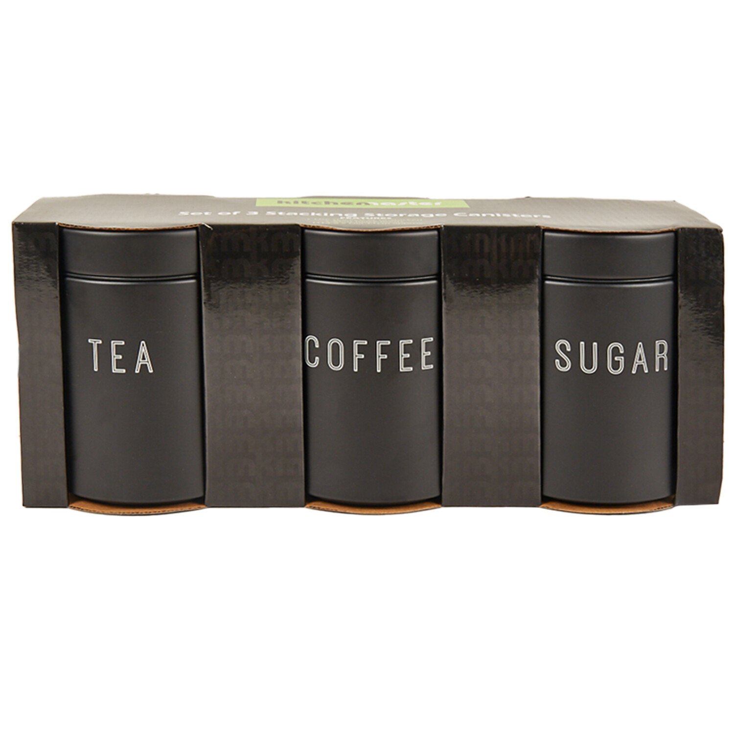 Make a charming addition to any contemporary kitchen with this Set of 3 Kitchen Master Stacking Canisters. This set of tea, coffee and sugar canisters features a neutral design with a matt black finish. Stackable to save space, they are great for collecting food supplies in classic style.