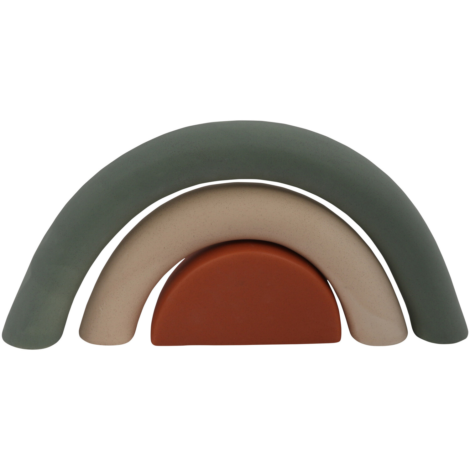 This Set of 3 Olivia Ceramic Rainbow Ornaments is a charming and vibrant decorative piece designed to bring a touch of fun and colour to any space. With their delicate craftsmanship and cheerful design, these ornaments fit together to create a contemporary rainbow design. They are perfect for adding a playful yet sophisticated element to your home decor and will look fantastic on accent tables, shelves, and mantelpieces.