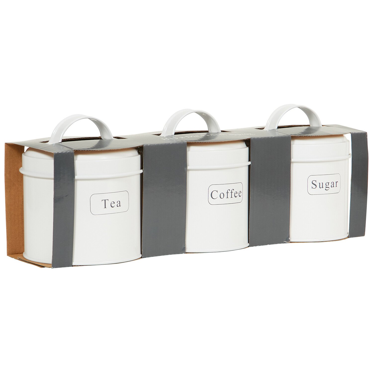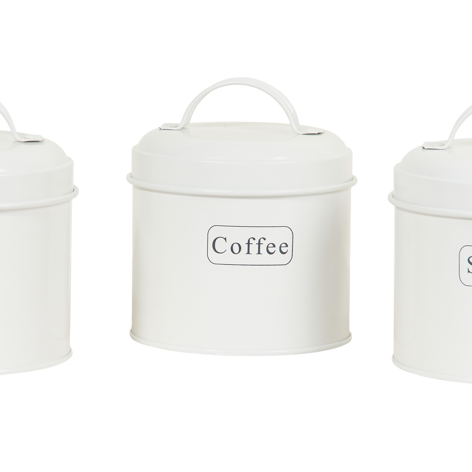 Store food supplies while keeping them fresh with this Set of 3 Storage Canisters. These tea, coffee and sugar canisters feature a round design in cream and are labelled for added ease. Easy to coordinate with any culinary space, these canisters are perfect to keep your clutter-free.