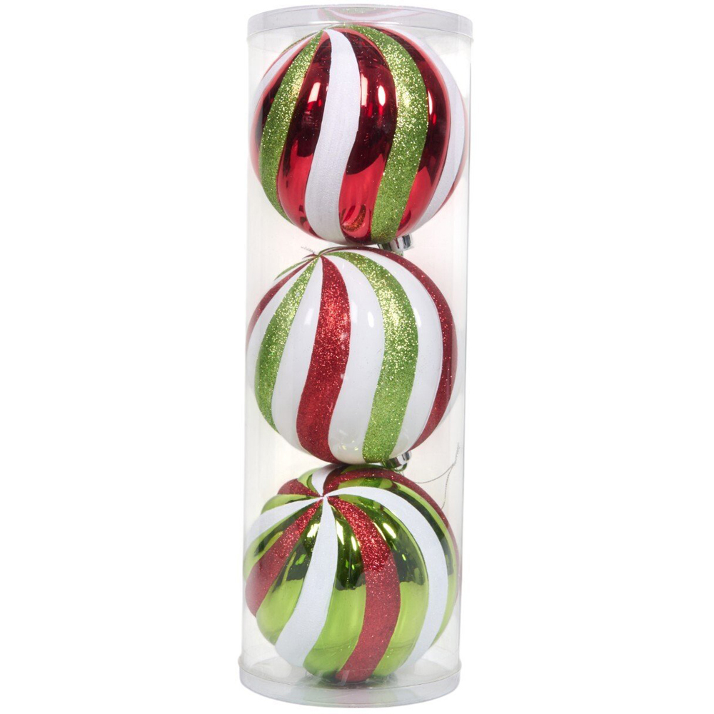 Adorn your Christmas tree with the Set of 3 XL Candy Cane Baubles. Set of three, these baubles feature a delightful candy cane-inspired design that makes them stand out beautifully on any Christmas tree. They are decorated with classic festive colourway and glitter accents, adding a dash of cheer to your space. They complement any decor effortlessly, enhancing your holiday setting in no time.