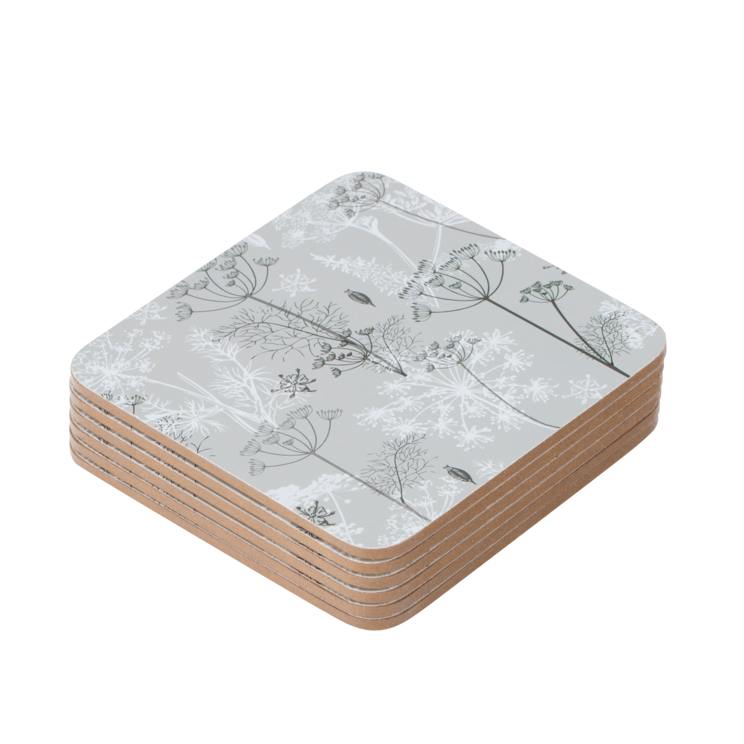 This Set of Six Dill Flower Coasters will add a modern and elegant touch to your dining or coffee table. The delicate flowers in subtle tones give the coasters a contemporary feel which will suit a number of interior decoration schemes. These six coasters are easy to wipe clean, and a lightweight cork backing ensures that your table and surfaces are protected against rubbing and scratching.