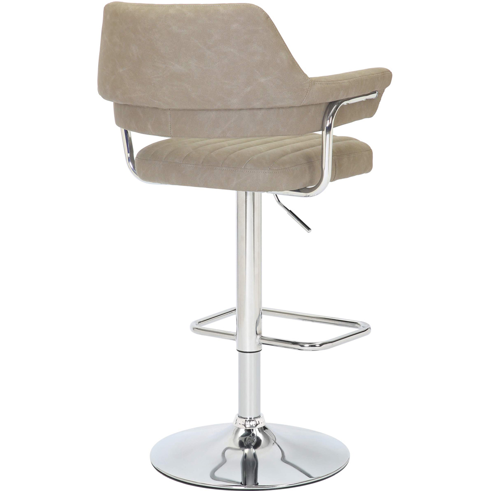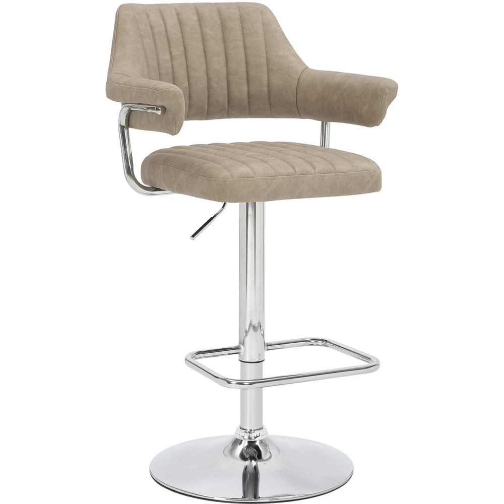 Add a classy look to your space with the Shankar Cortez Mink Leather Bar Stool Set of 2. It is a striking contemporary bar stool, upholstered in leather effect fabric. It features a floating seat and the back is highlighted with ribbed stitch detailing. The layered back and armrests are supported by a feature L-shaped curved chrome bar for added comfort. The rounded chrome base comes fitted with a large rectangular footrest. Height is adjustable between 93cm to 113cm via a gas lift mechanism. The seat also easily swivels a full 360 degrees. This product requires assembly. It is sold in sets of 2.