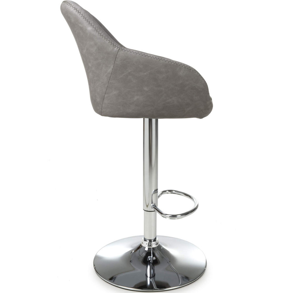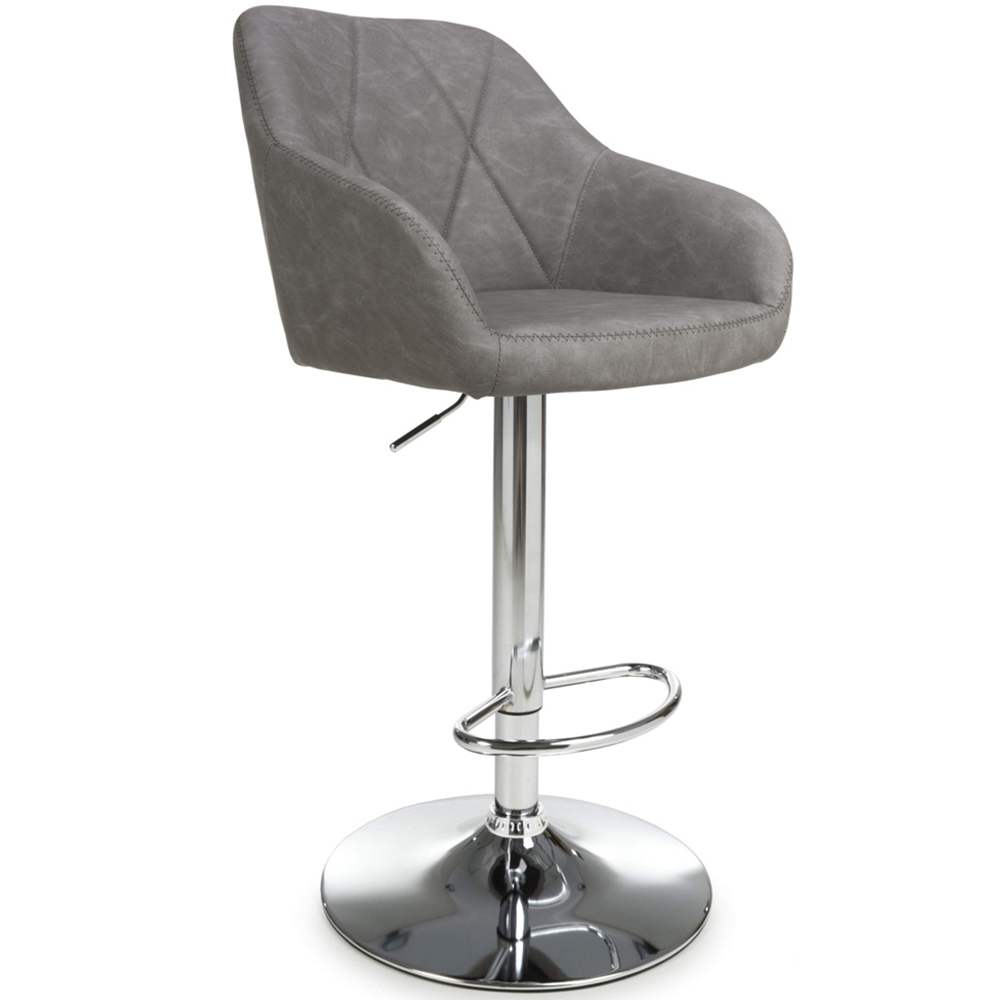 Add a classy look to your space with the Shankar Serena Charcoal Leather Bar Stool Set of 2. It features an alluringly curved modern bar stool, upholstered in mink leather effect fabric. The wrap-around seat features slim armrests with zigzag stitching. The gas lift mechanism adjusts the stool height from 93cm to 114cm via an under-seat handle. The seat also easily swivels a full 360 degrees. This product requires assembly. It is sold in sets of 2.