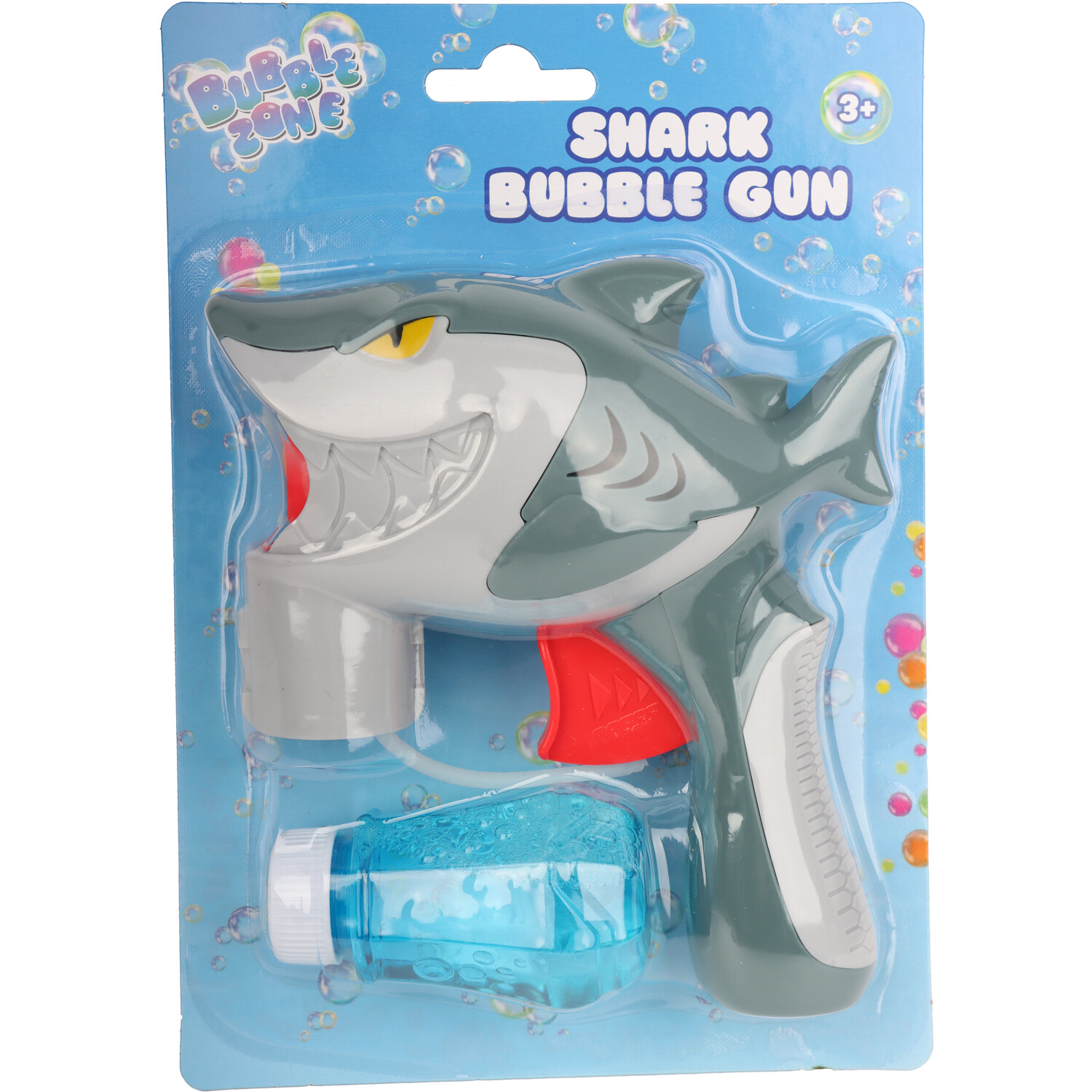 Ensure hours of fun with this Shark Bubble Gun. Designed to look like a shark, this gun will undoubtedly delight kids who love underwater creatures. Easy to play, it provides blowing bubble fun making it a great accessory for solo and group play.