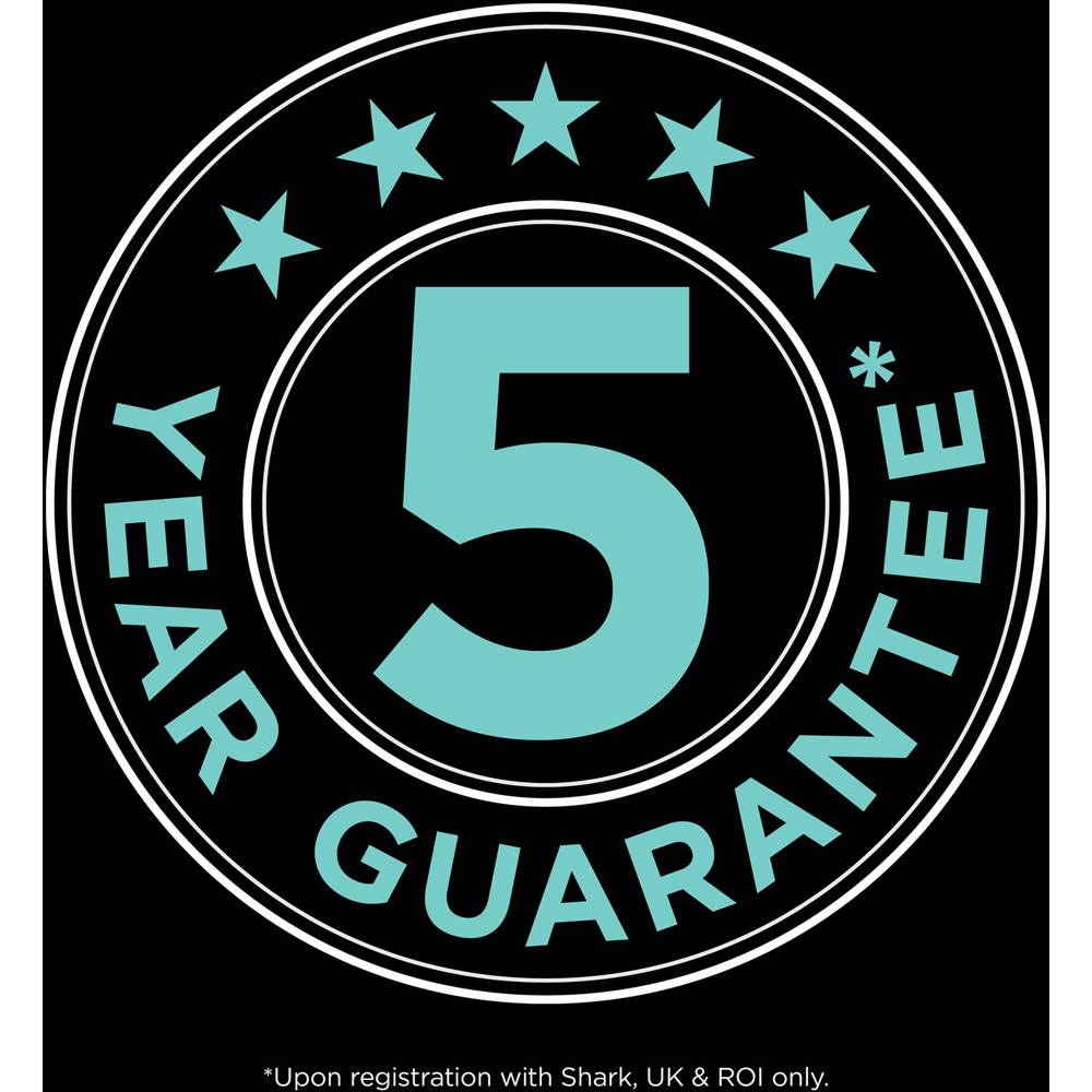 Glide from carpets to hard floors with Duo Clean. Two motorised brush-rolls work together in one floorhead. A bristle brush-roll cleans deep into carpet pile while a soft front brush-roll draws in large debris and small particles and lifts fine, stuck-on dust from hard floors. Great for homes with a mix of floor types. Enhanced with Anti Hair Wrap Technology. Tired of removing tangled hair from your vacuum’s brush-roll? A bristle-guard and comb actively removes long, short and pet hair from the bristle brush-roll as you clean, sucking it straight up into the dust cup and helping to keep your brush-roll tangle-free. Easily clean under furniture with Flexology. At the touch of a button, this flexible wand bends to reach underneath low-lying beds, sofas and coffee tables with no need to lift them. Signature LED headlights in the floorhead help to illuminate hidden dust. When you’ve finished cleaning, fold down for compact freestanding storage. Not just for floors. Transform into a lightweight handheld cleaner to clean stairs, soft furnishings and more. A precision nozzle lets you tackle on-the-spot cleans without an attachment, while a Crevice Tool and Multi-Surface Tool in the box give you extra versatility. Attach the wand in handheld mode to effortlessly reach ceilings, curtains and light fittings. Easily move around your home with swivel steering and an extra-long 10m cord. Shark Guarantee: For your peace of mind, Shark offers a free 5 year guarantee upon registration with Shark (UK & ROI only).
