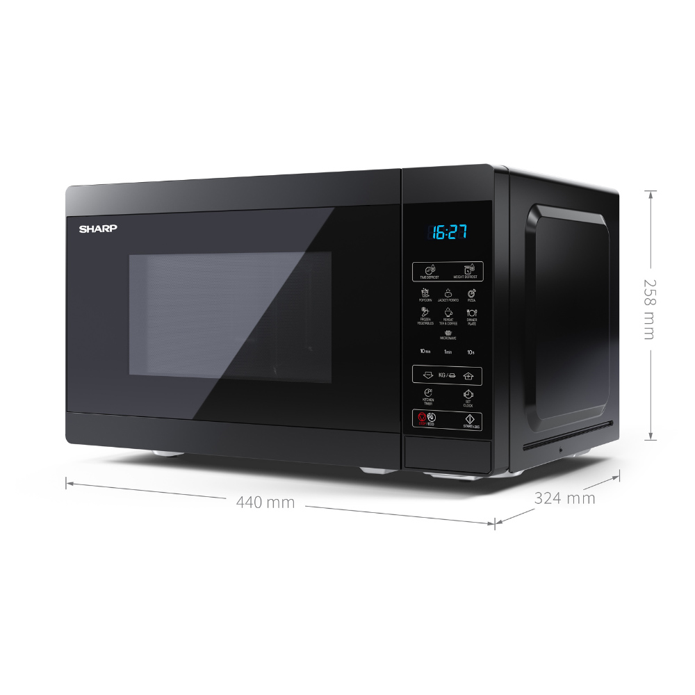 Cook delicious meals at home with this Sharp Black 20L Solo Electronic Control Microwave 800W. This compact microwave is perfect for efficient and convenient cooking. With a capacity of 20 litres, this microwave oven is ideal for smaller families and individuals alike. Featuring 800W microwave power, you can expect even cooking results every time. With 11 adjustable power levels, you have control over your cooking preferences to achieve the desired results from your microwave. The fully digital control panel ensures simple operation, allowing you to navigate various functions and settings easily. The 255mm glass turntable can easily hold a standard dinner plate. Cleaning up is a breeze with this easy-to-clean microwave oven. You can wipe away any spills or splatters, saving you valuable time and effort in the kitchen.