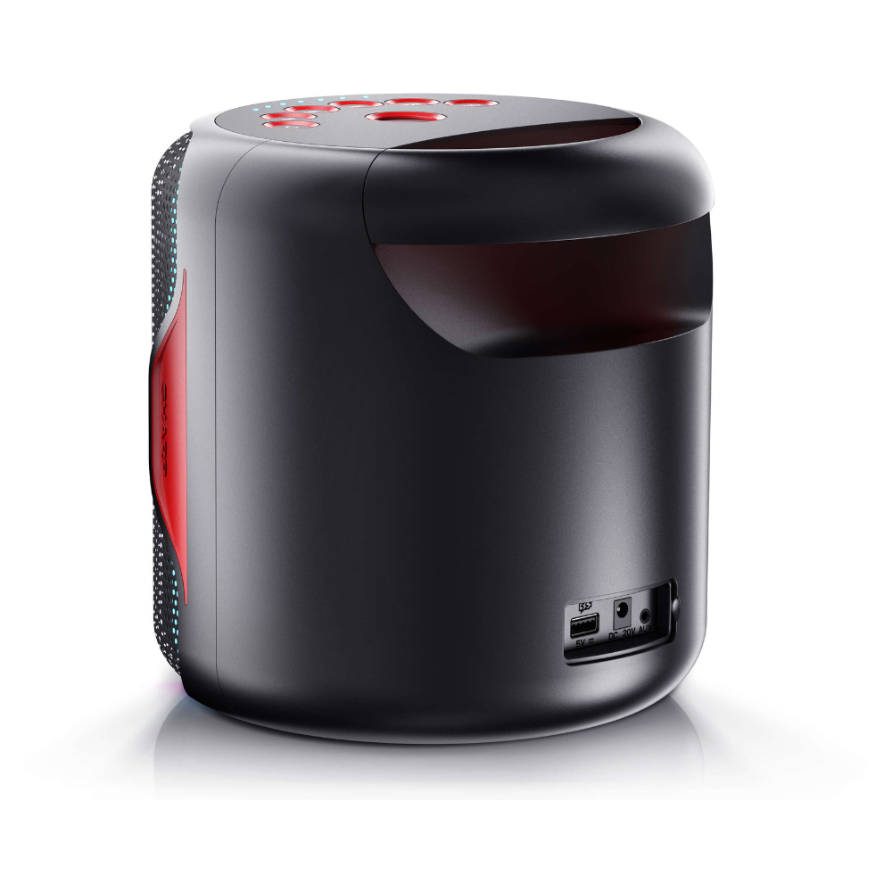 Enjoy an energetic party with your favourite song with this Sharp Black and Red Party Speaker 130W. This party speaker allows you to recreate the party atmosphere anywhere you require, and with 130W of power, it packs a punch for its size. You are ready to connect this speaker to another device, such as a smartphone or tablet. Depending on the mood and sound, you can choose between different effects, whether flashing highlights to match the music or rotating LED light wheels. Thanks to the built-in battery, this speaker has a playtime of up to 14 hours, making it completely portable. If the battery starts running low, you can keep the party going by plugging it into the switchboard and recharging it while your music continues playing. It weighs just 2.7kg, and with an integrated carry handle, this speaker is genuinely portable. Not only do you get more volume and power, but also a more expansive sound stage. Controlling this is easy, thanks to the duo mode. All you need to do is connect your mobile device to one speaker. The bottom of this speaker has a tripod fixing hole (tripod not included), which allows you to mount the device onto a tripod. The speaker also boasts IPX5 certification.