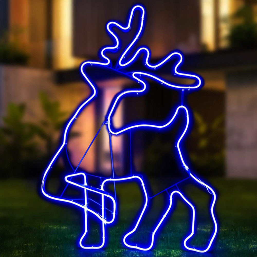 Shatchi Blue LED Walking Reindeer Neon Rope Silhouette