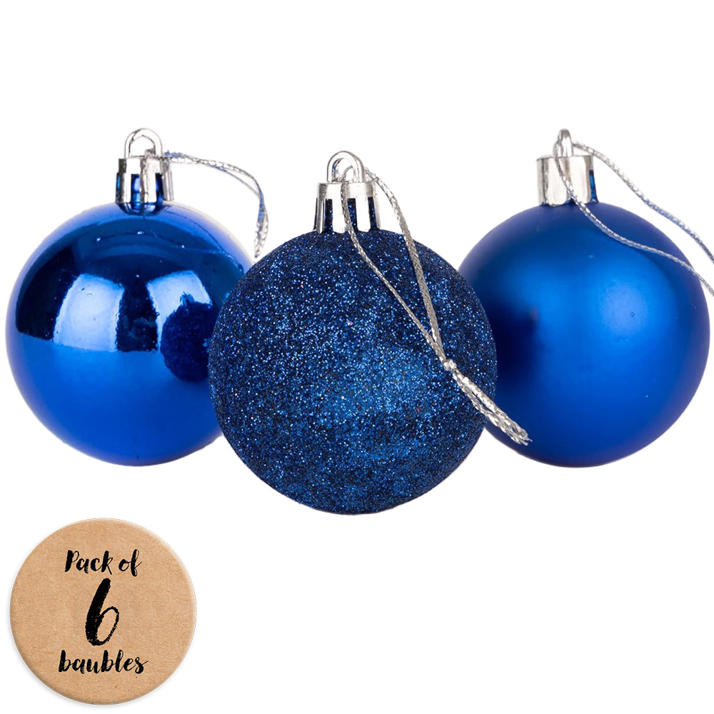 Shatchi 6cm Blue Shatterproof Bauble 6 Pack