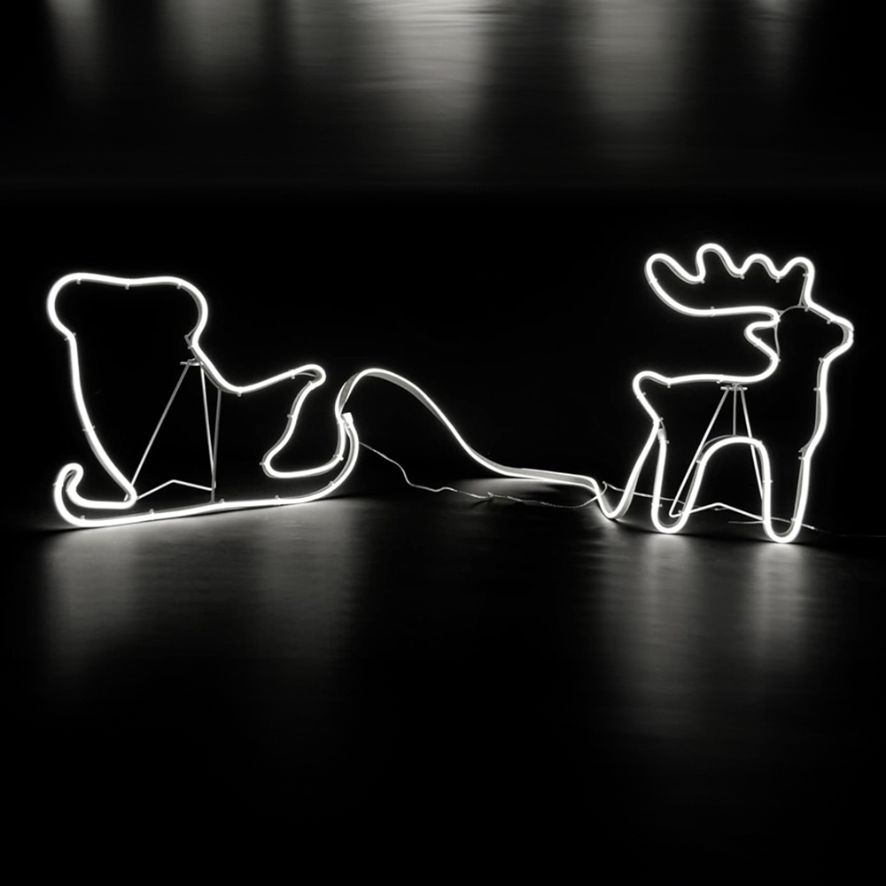 Shatchi Cool White LED Reindeer with Sleigh Silhouette