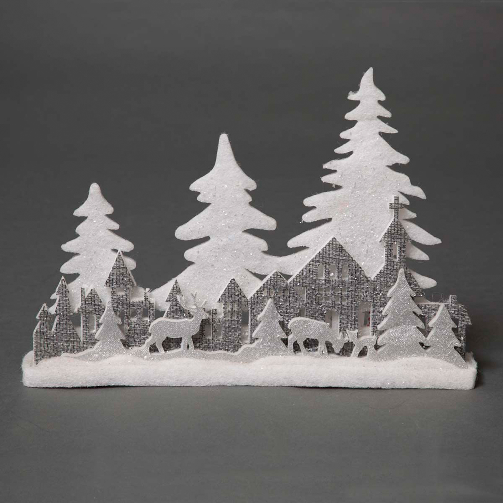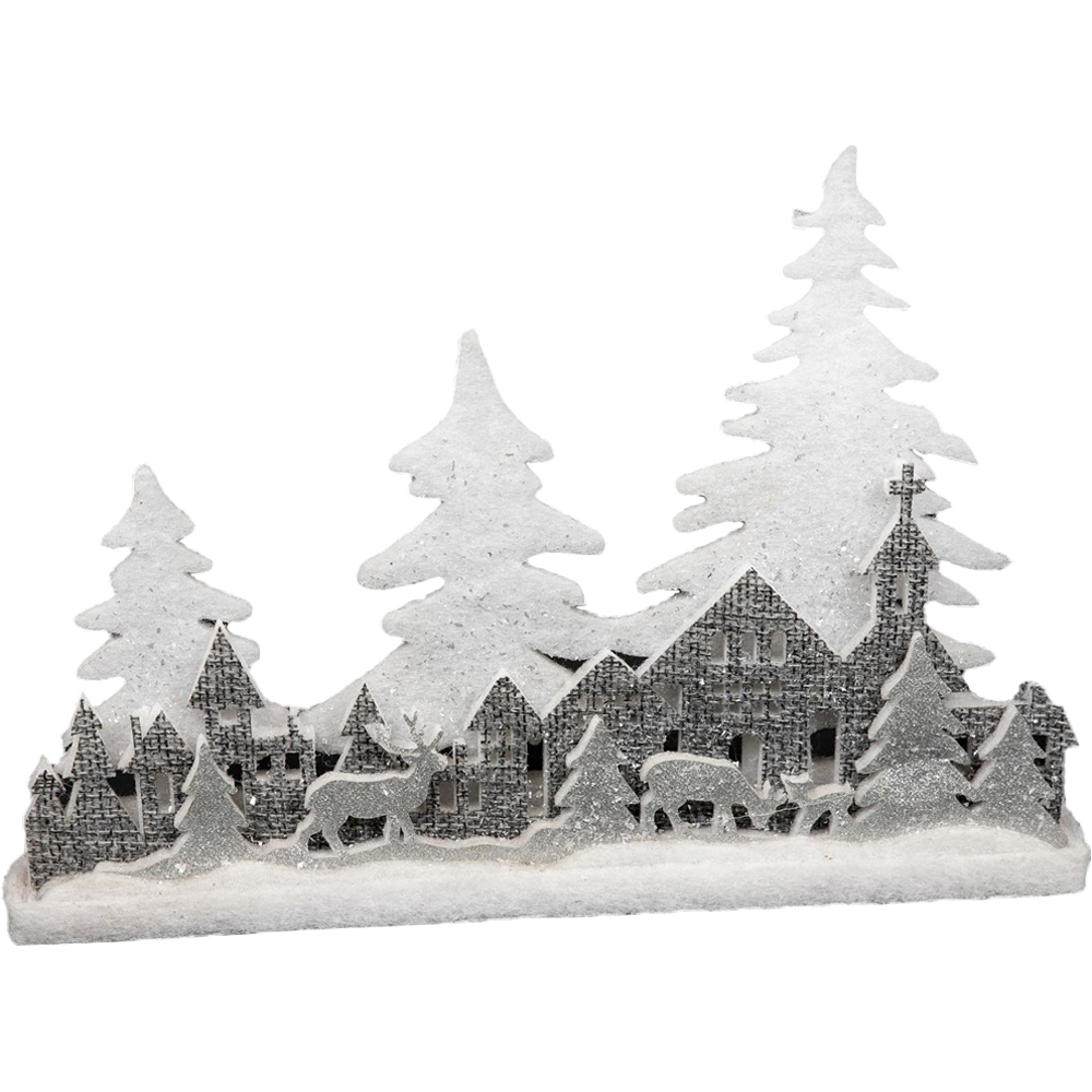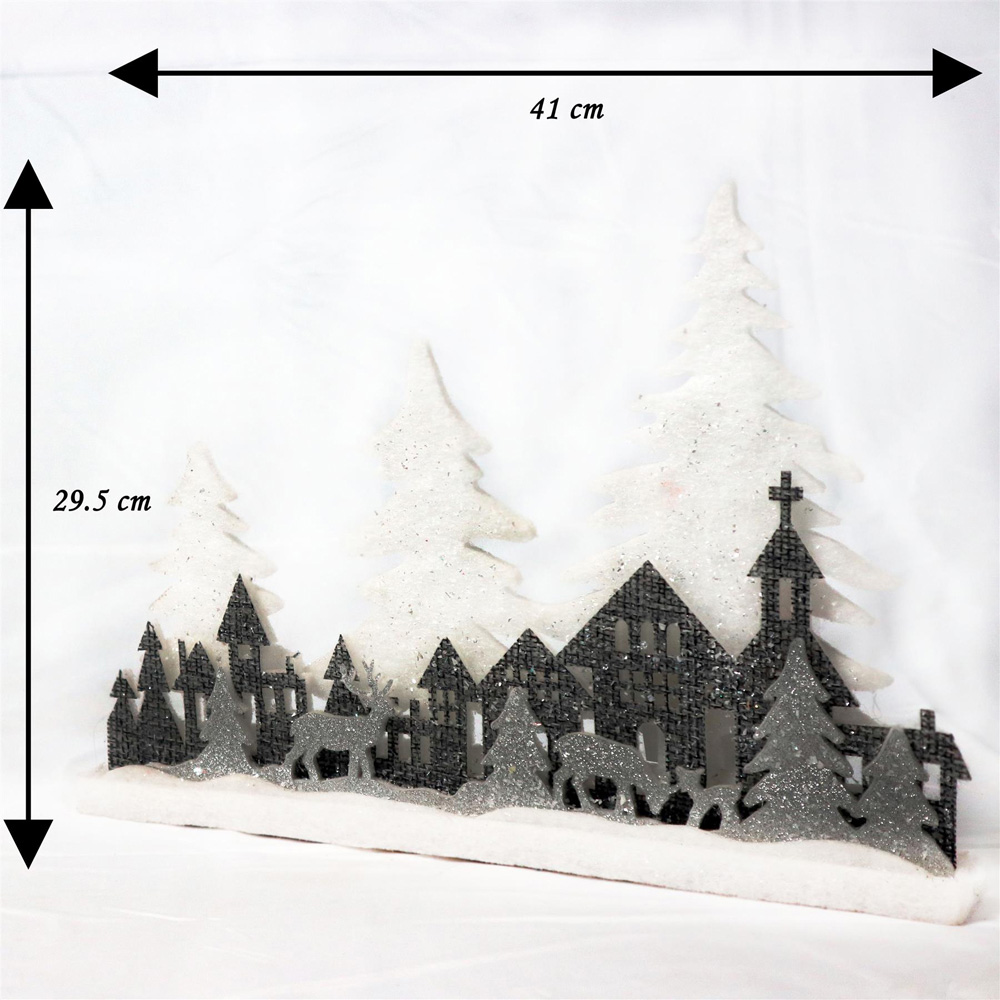 Shatchi Grey Winter Wonderland Village Scene Glitter Foam Snow Covered Christmas Decoration