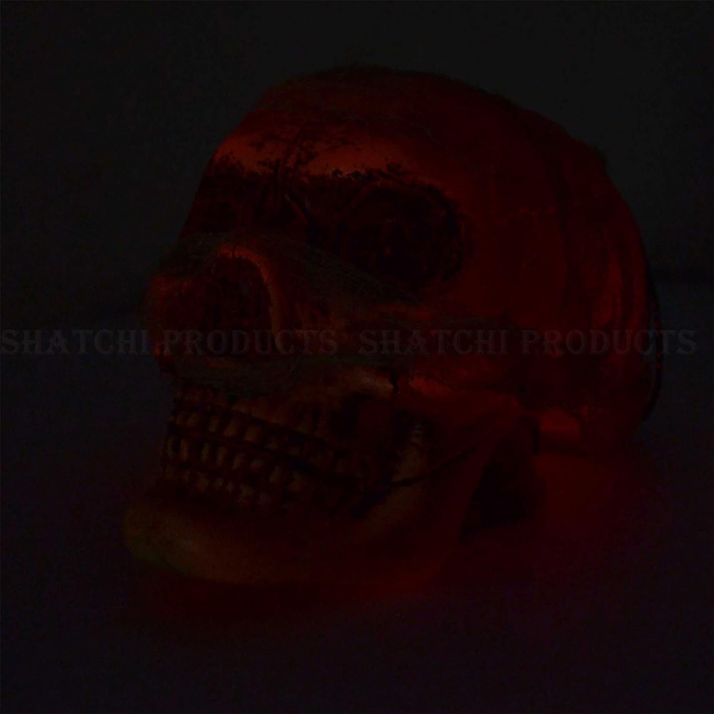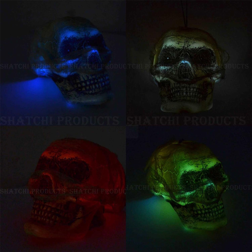 Transform your Halloween ambiance with Shatchi Halloween White Hanging Skull. Crafted with meticulous attention to detail, this product promises to be a standout addition to Halloween decor, imbuing the space with an aura of mystery and intrigue. Designed with quality in mind, this hanging skull decoration boasts exceptional craftsmanship for longevity. The LED light feature is a remarkable highlight, powered by 3 x 1.5V LR44 batteries that are included. When activated, the eyes of the skull emit a mesmerizing glow that transitions through a spectrum of captivating colours, making it a captivating focal point for any setting. Perfectly suited for theme parties, home embellishments, cafes, bars, and various other settings, this skull serves as both a decorative element and a source of festive delight. It can be easily placed in any corner without occupying unnecessary space. While its haunting aesthetic is perfect for Halloween, its appeal extends to other occasions such as Christmas, themed parties, festivals, weddings, birthdays, and more.