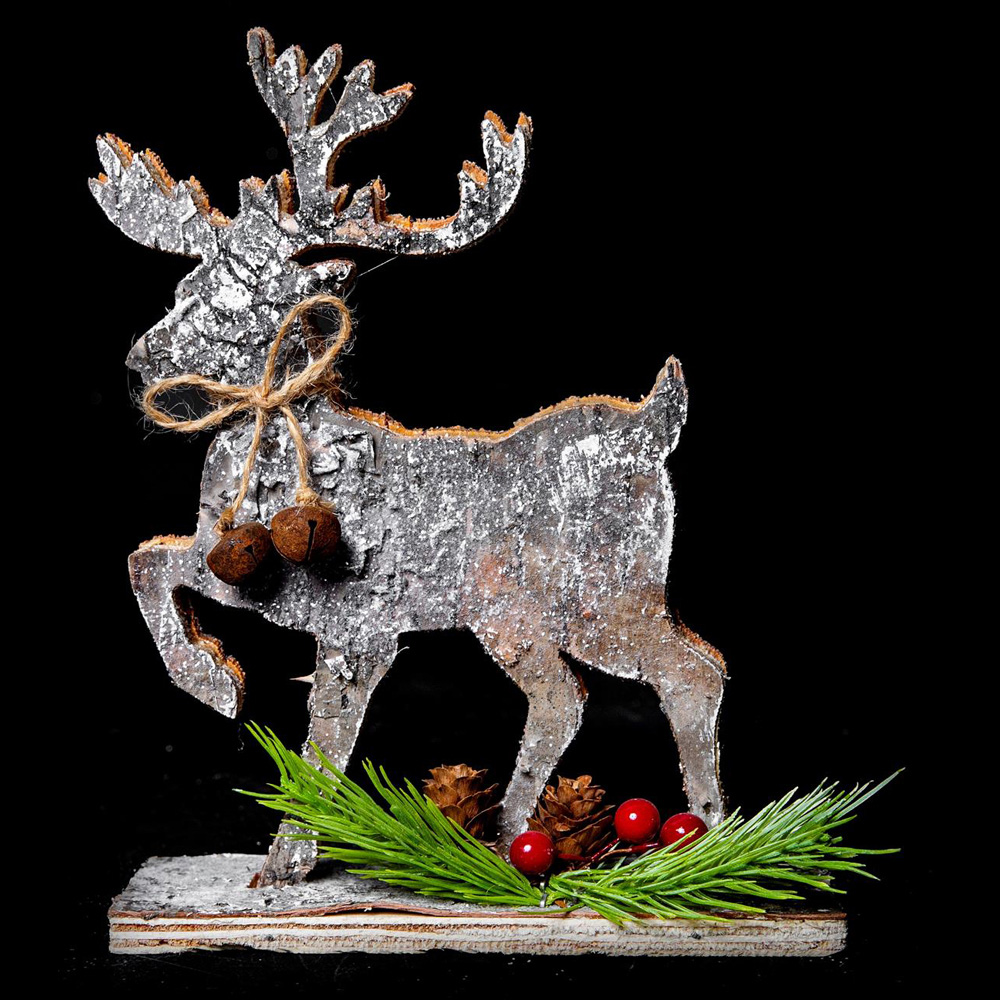 Celebrate the enchantment of Christmas and embrace the beauty of nature with our 20cm Birch Bark Wooden Christmas Free Standing Deer Shape Decoration, adorned with Pine Needles, Cones, Berries, and Hanging Bells. Elevate your holiday decor with this exquisite and eco-conscious piece that captures the true essence of the season. Order yours now and make this Christmas truly special for your family and guests! Additionally, this Reindeer shaped decoration serves as a heartwarming and delightful gift idea. Share the joy of Christmas with family and friends by surprising them with this unique and meaningful present that embodies the magic of the season in a whimsical winter scene.