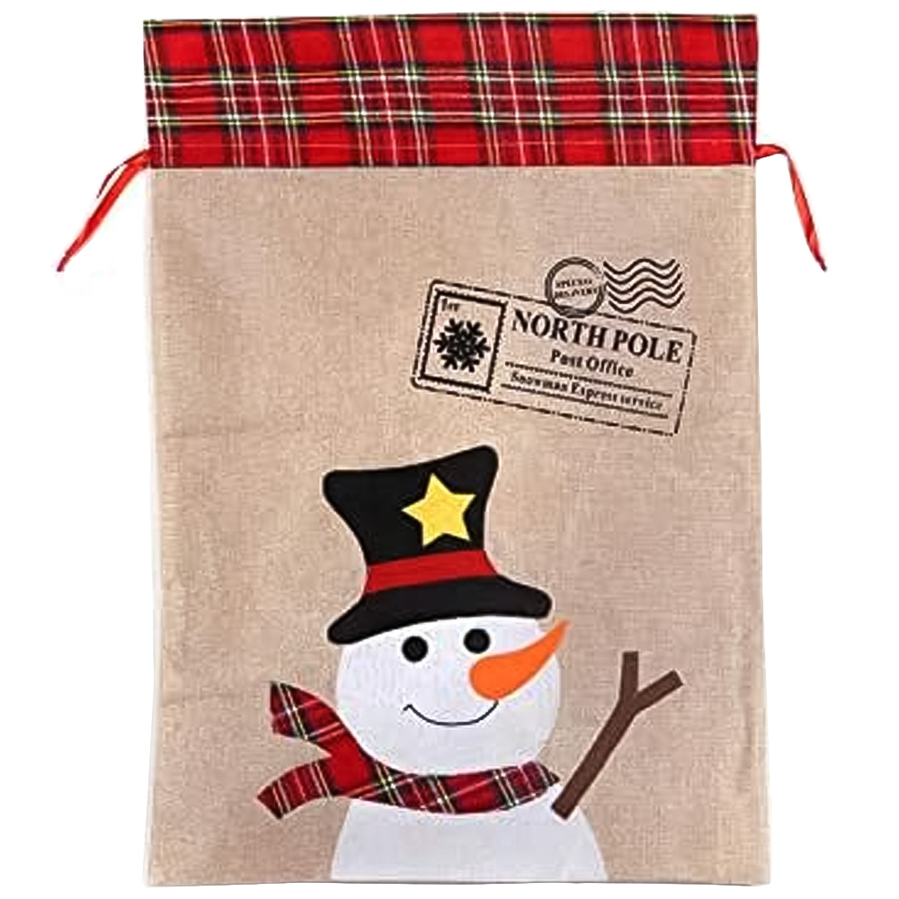 Shatchi Snowman Burlap Hessian Linen Christmas Santa Sack 70 x 50cm