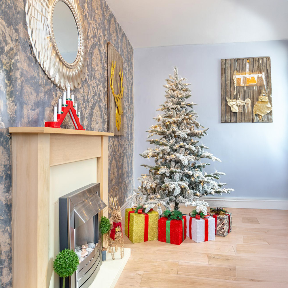Deluxe Pre Lit Californian Pine Artificial Snow Covered Christmas Tree with 356 tips & 210 warm white LEDs. Quick and easy assembly with a metal stand, and hinged branches makes it even easier to set it up. Illuminated with long life energy saving warm white LEDs which last up to 50,000hrs, add your favourite ornaments or just leave the way it is, naturally beautiful. 5ft (150cm) Tall and approx. 70cm diameter at the widest point. Tips are made of high-quality PVC material which lasts long enough so you can enjoy your Christmas year after year. Snow covered leaves create a unique wintry feel, making this Xmas tree an eye-catching addition for any place. You can either put it at home to strengthen the Christmas atmosphere and celebrate Christmas with family members pleasantly, or put it in shops to attract the attention of customers. All hinged construction makes the artificial tree easy to fluff and set up, saving you a lot of time and effort. It is also easy to disassemble so you can store it for next Christmas.