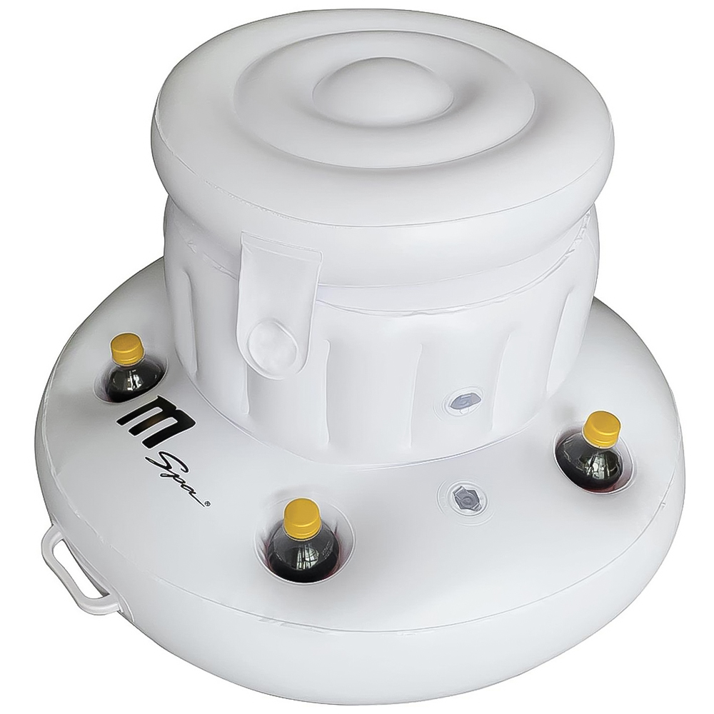 Hot Tub Inflatable ice box/drink or snack holder features five cups/drink holders around the side and one large space in the centre that you can put ice to chill your drinks or simply treat it as a snack box. Size: 64cm (25"), The ice box also has two handy carry straps on each side. 5 cup holders around the side and centre space for ice, drinks, or snacks.