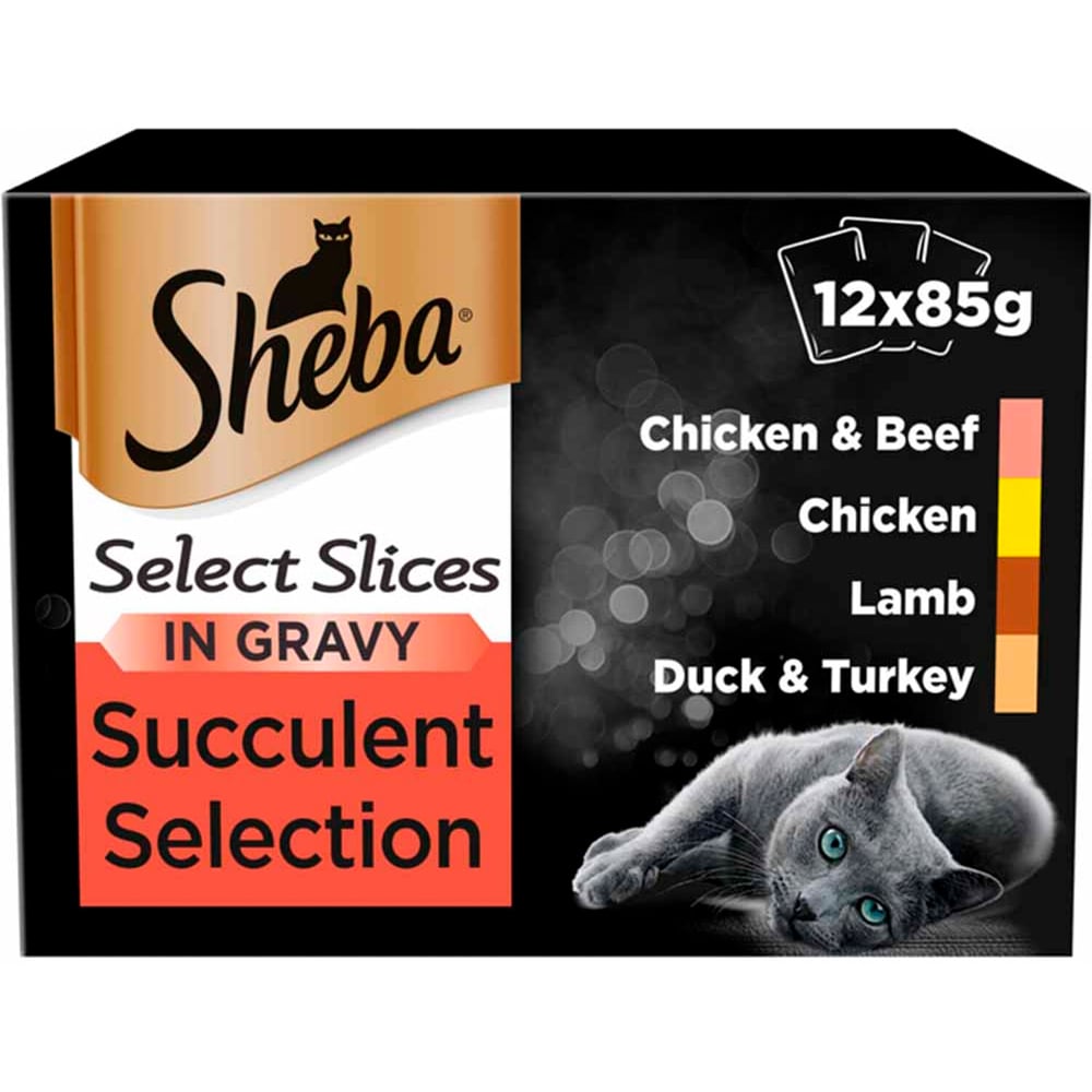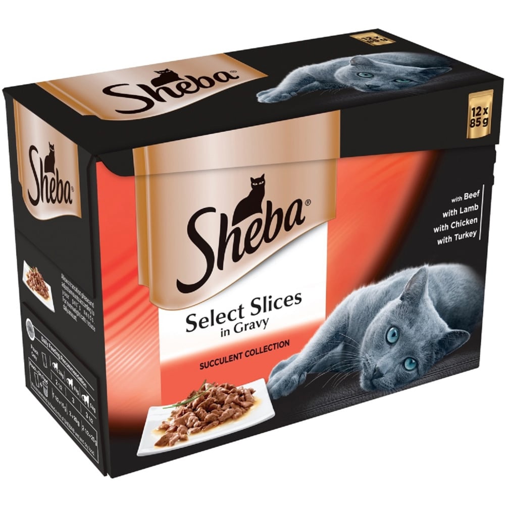 Treat your cat to a mouthwatering meal packed with vitamins and minerals through this Sheba Select Slices Succulent Gravy Cat Food Pouch 12 Pack 85g. These delicious daily cat food options from Sheba offer a variety of flavours and textures that your feline is familiar with and adores. This diverse adult cat food selection is guaranteed to meet your cat's craving for delightful daily dining experiences. It is crafted without any fillers, ensuring your cat receives essential nutrients and nothing unnecessary. This premium pet food will keep your furry companion begging for more. Each pack contains 12 pouches of 85g. Feeding recommendations: allow a transition period, adjust portions, and divide meals according to your cat's needs. Always provide fresh water. Serve the food at room temperature, and any leftovers can be stored in the refrigerator for up to two days. Daily Feeding Advice: It is suggested to combine wet Sheba food with dry food.