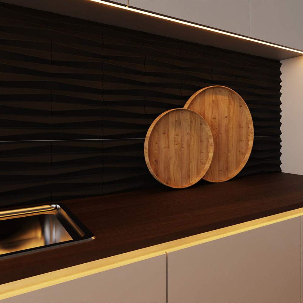 Shh Acoustics Black Ripple Geometric Pattern PU Wall Panel 2 Pack