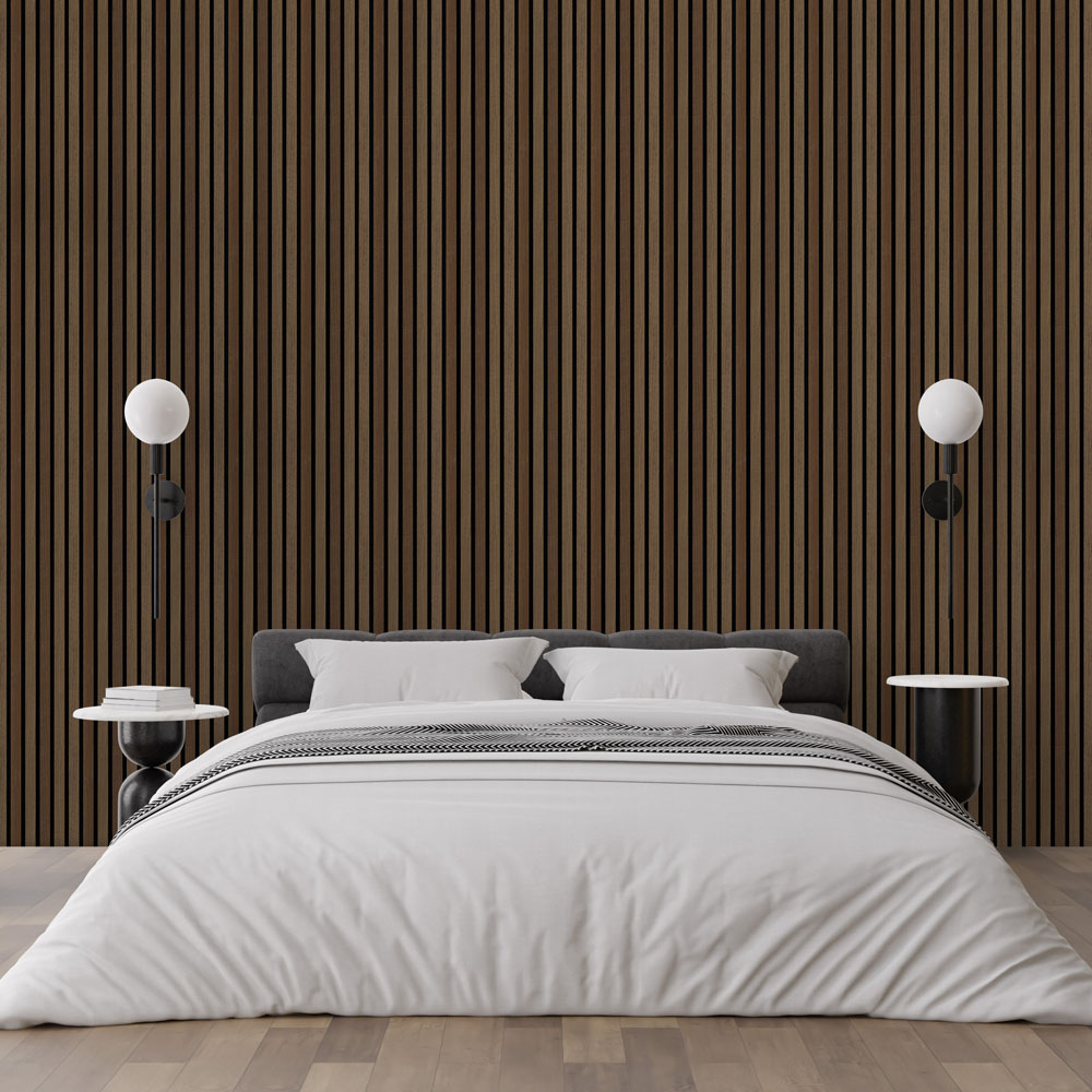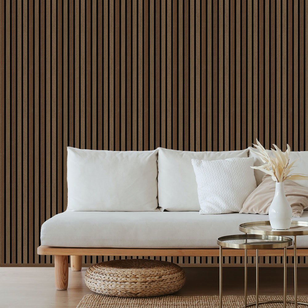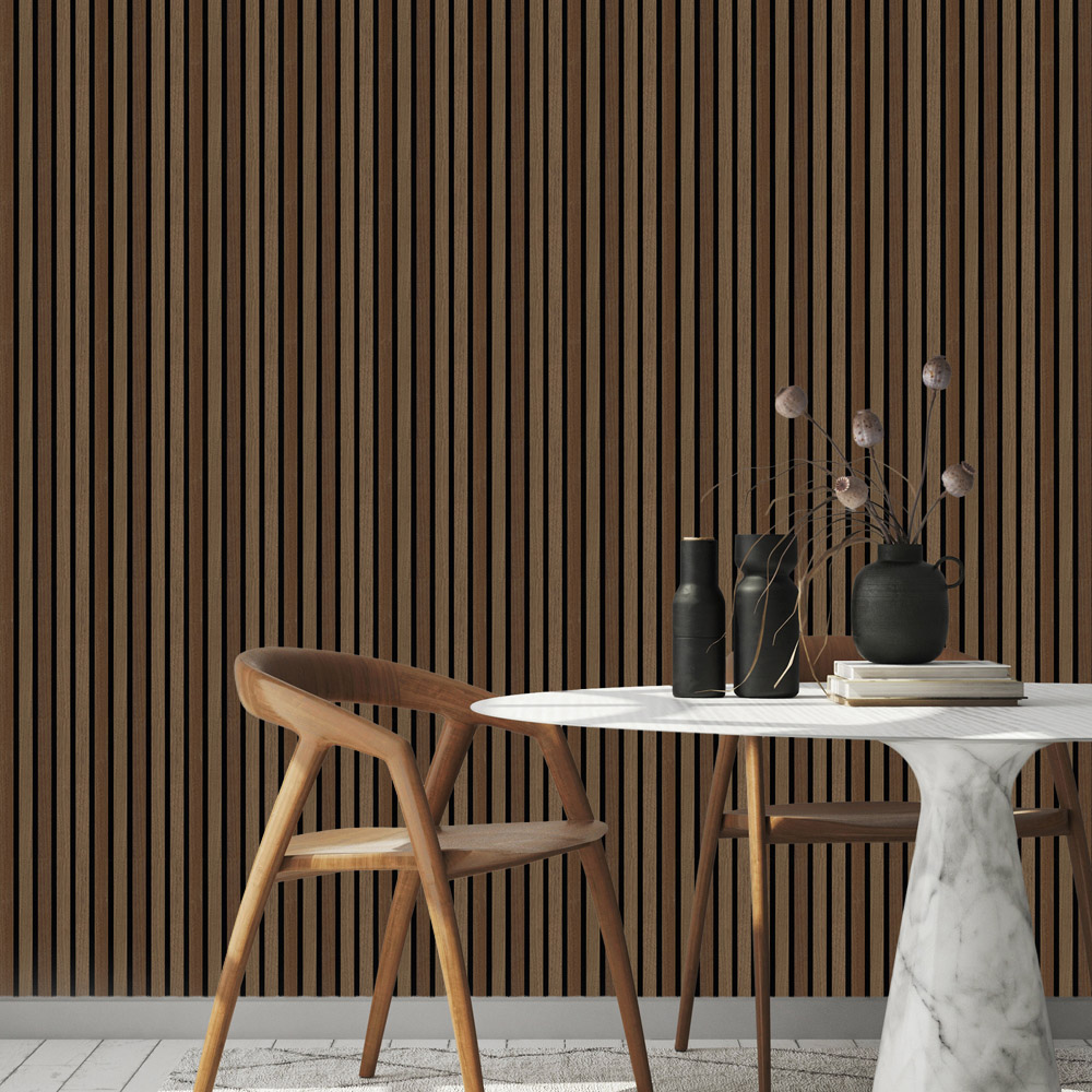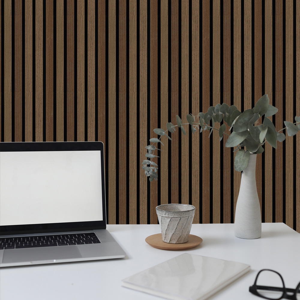 Unleash the allure of modern elegance and elevate the beauty of your home with the Shh Acoustics Walnut Decorative Slat Wall Panel. This 240 x 60cm panel is a testament to contemporary design and outstanding acoustic performance. Crafted in a three-sided pattern, this exquisite wood veneer slat wall panel evokes a sense of sophistication and timelessness. Built to withstand the test of time, this high-quality MDF wall panel combines durability with captivating aesthetics. Let the rich, warm tones of walnut envelop your space, while the black felt backing absorbs sound for a more serene environment.