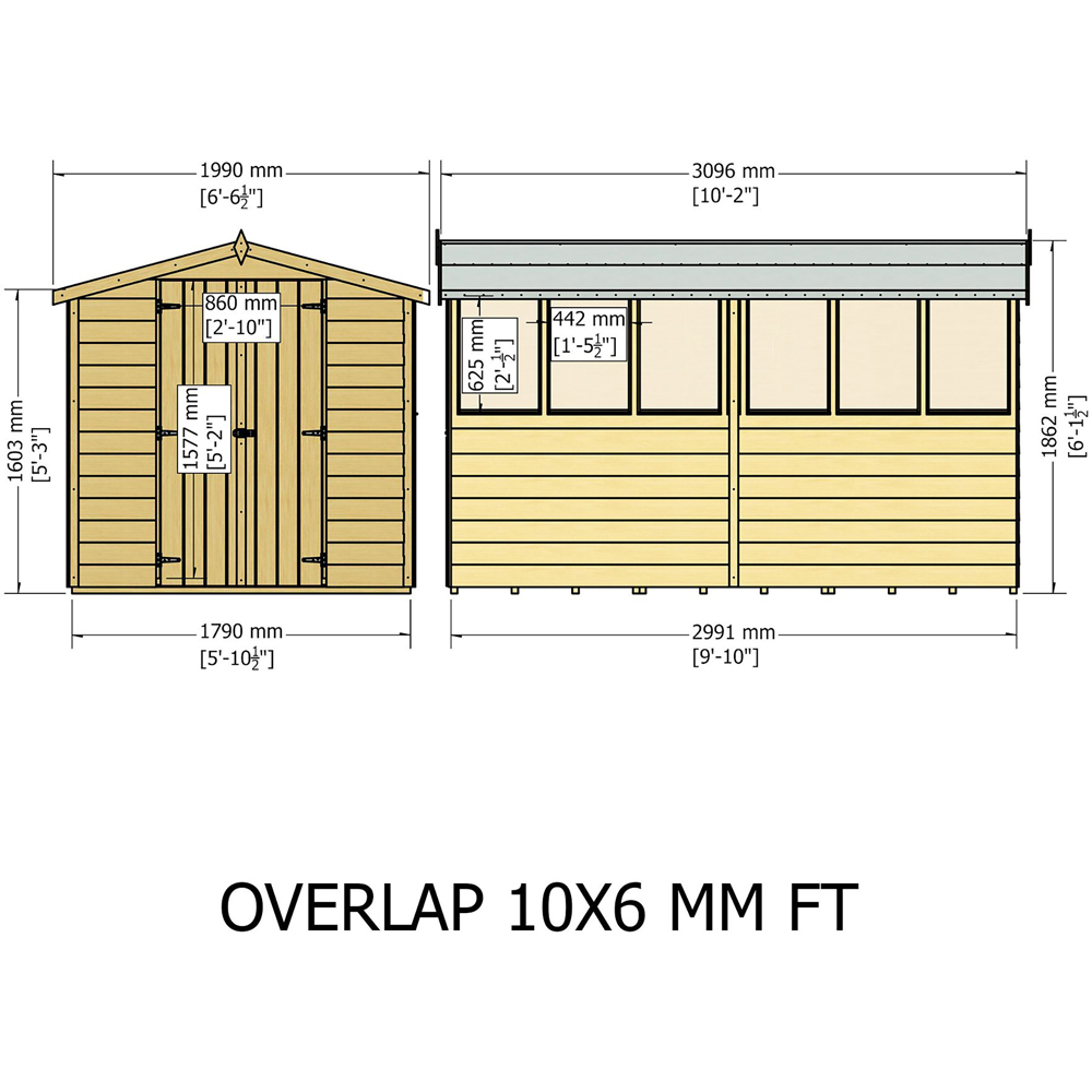 Complete your outdoors with the Shire 10 x 6 feet Double Door Overlap Apex Shed. This double door, overlap apex shed makes an attractive feature in any garden. Its windows down one side provide plenty of light and have safety glazing. The windows can be fitted on either side and are non-opening. Apart from this, the double doors in the 6' Gable and generous eaves height allow easy access to the entire space. Note: Currently, we're unable to deliver this product to DG, TD, KA, ML, EH, G, PA, FK, KY, PH, DD, AB IV and KW areas. We regret the inconvenience and will keep you posted when it's available to order for the mentioned postcodes.