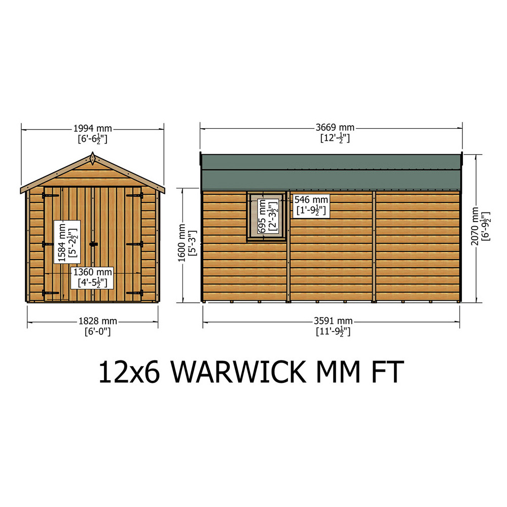 Store all your garden equipment and bulky machinery safely and securely with Shire Warwick Wooden Shed 12 x 6ft. This spacious shed is supplied with top-quality 12mm Shiplap timber to the walls and solid OSB boards to the roof and floor on 34mm square framing. Manufactured from High Northern European FSC-certified timber - it comes with one opening window. Roof felt fixings and assembly instructions are included.Note: Currently, we're unable to deliver this product to DG, TD, KA, ML, EH, G, PA, FK, KY, PH, DD, AB IV and KW areas. We regret the inconvenience and will keep you posted when it's available to order for the mentioned postcodes.
