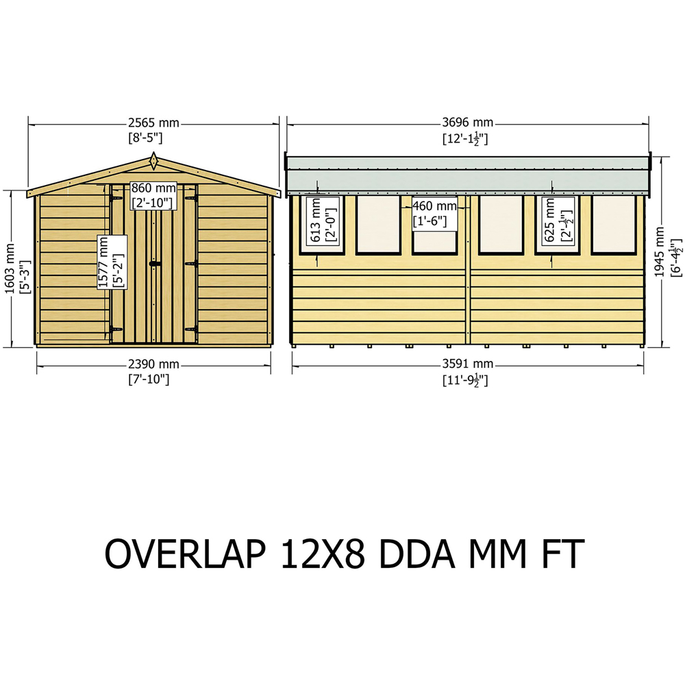 Store your garden essentials safely with the Shire 12 x 8 feet Double Door Overlap Apex Wooden Shed. Featuring a double door, the overlap apex shed makes an attractive feature in any garden. Its windows down one side provide plenty of light and have safety glazing. The windows can be fitted on either side and are non-opening. Apart from this, the double doors in the 8' gable and generous eaves height allow easy access to the entire space. Note: Currently, we're unable to deliver this product to DG, TD, KA, ML, EH, G, PA, FK, KY, PH, DD, AB IV and KW areas. We regret the inconvenience and will keep you posted when it's available to order for the mentioned postcodes.