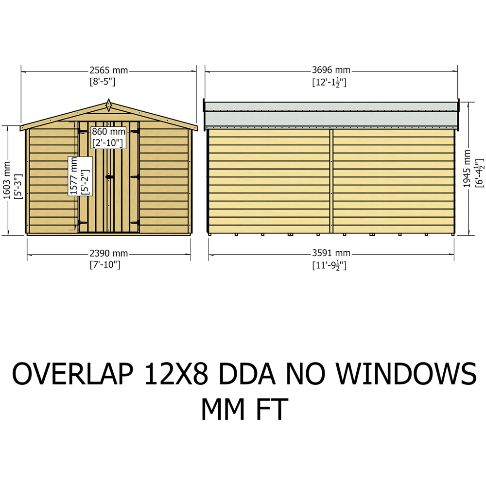 Make a stunning addition to your garden with the Shire 12 x 8 feet Windowless Overlap Apex Wooden Shed. This shed is manufactured from high-grade, slow-grown, FSC-approved, European pine for a sturdy and durable exterior. Featuring a double door, the overlap apex shed makes a useful addition to any garden. The double doors in the 6' Gable and generous eaves height allow very easy access to the entire space. There are no windows on this model. Note: Currently, we're unable to deliver this product to DG, TD, KA, ML, EH, G, PA, FK, KY, PH, DD, AB IV and KW areas. We regret the inconvenience and will keep you posted when it's available to order for the mentioned postcodes.