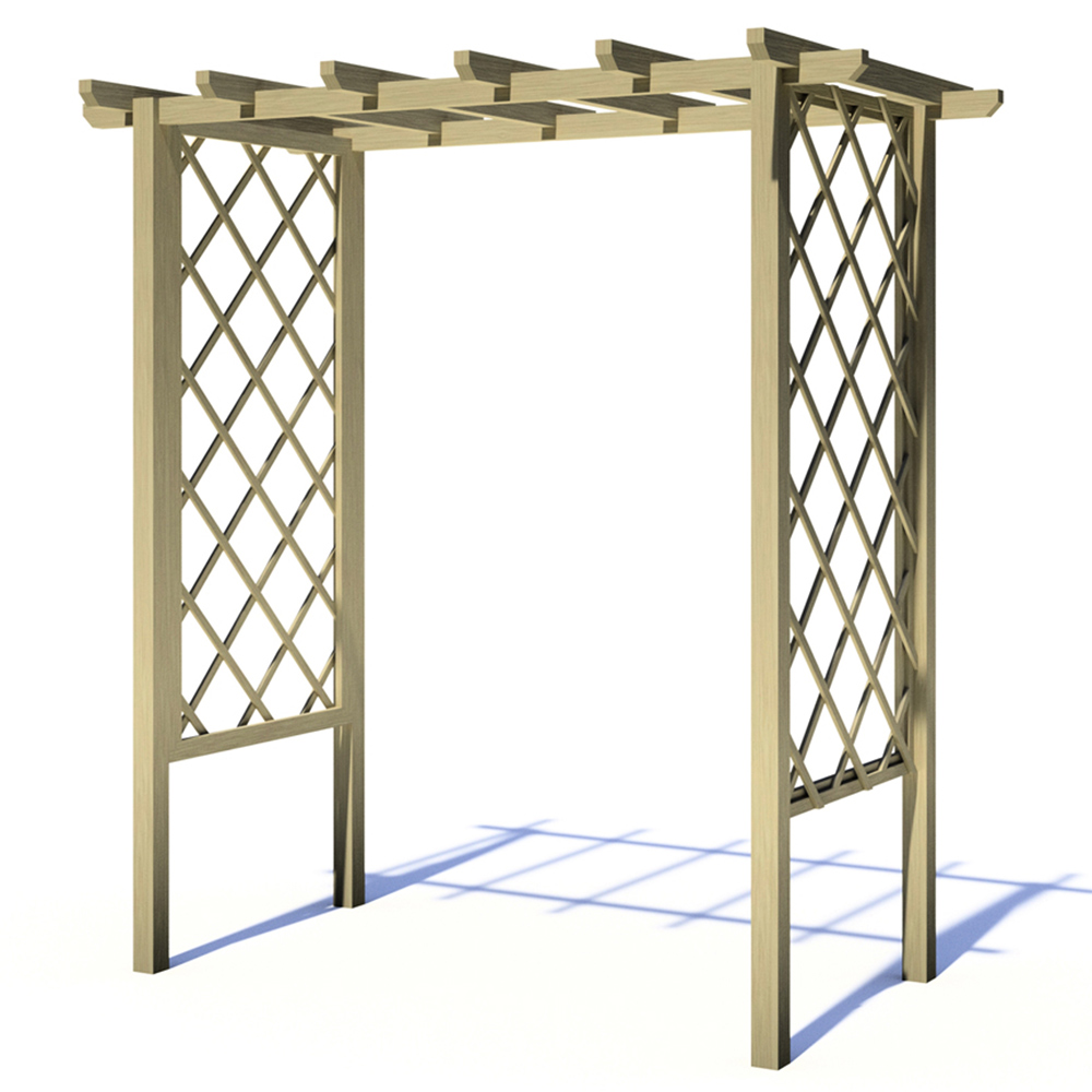 This pretty 6 x 3ft Arch Trellis Pergola from Shire is perfect to make a garden path more interesting! Manufactured in the UK from slow-grown, high-grade FSC-certified timber, the pressure-treated finish gives a longer life with low maintenance. The pressure-treated finish can be left in its natural colour although can be painted or stained should you wish to personalise the arbour to suit your existing garden design. The posts are 70mm square with roof purlins 44 x 70mm, the sides have a 34mm square outer frame with 12 x 27mm slats to provide a substantial archway. Easy to assemble and comes complete with instructions.Note: Currently, we're unable to deliver this product to DG, TD, KA, ML, EH, G, PA, FK, KY, PH, DD, AB IV and KW areas. We regret the inconvenience and will keep you posted when it's available to order for the mentioned postcodes.