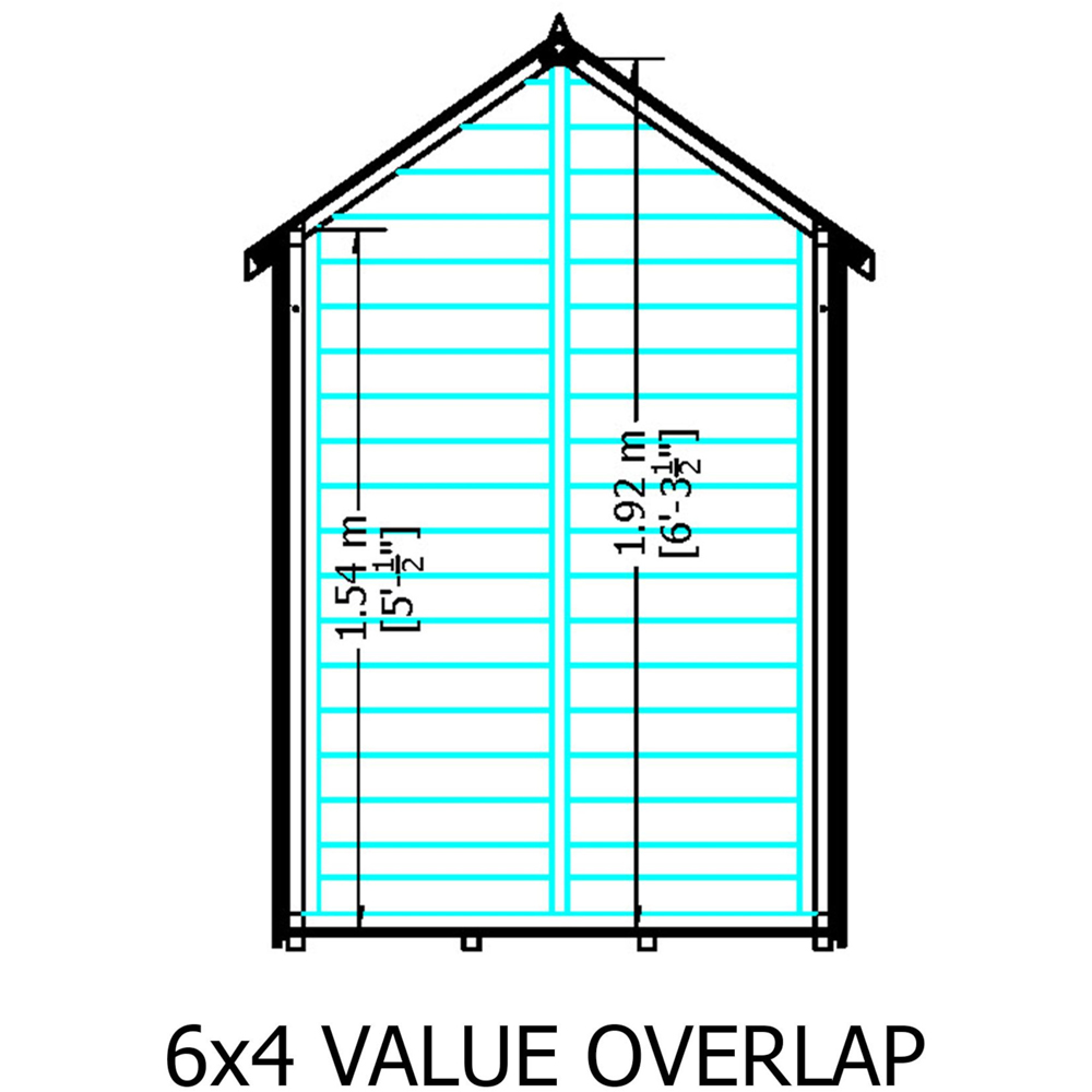 Enhance your garden with the Shire 6 x 4ft Overlap Apex Shed. It is crafted from high-quality FSC-approved European pine cladding boards and sturdy 34mm square framing. The shed features a single door with a hasp and staple catch for security, a solid sheet OSB roof and floor, and green mineral felt finishing on the roof. This model does not include windows and `comes with all necessary fixings, roof felt, and assembly instructions. Please note: After placing your order, you will receive a link to select your delivery day and live tracking information on the morning of the delivery. Before assembly, ensure you have a flat and level base of adequate size, as grass, soil, or gravel may not provide sufficient stability for the shed. Delivery is available to most areas, but currently not to DG, TD, KA, ML, EH, G, PA, FK, KY, PH, DD, AB IV, and KW postcodes. We apologise for any inconvenience and will update you once delivery is possible to these areas.