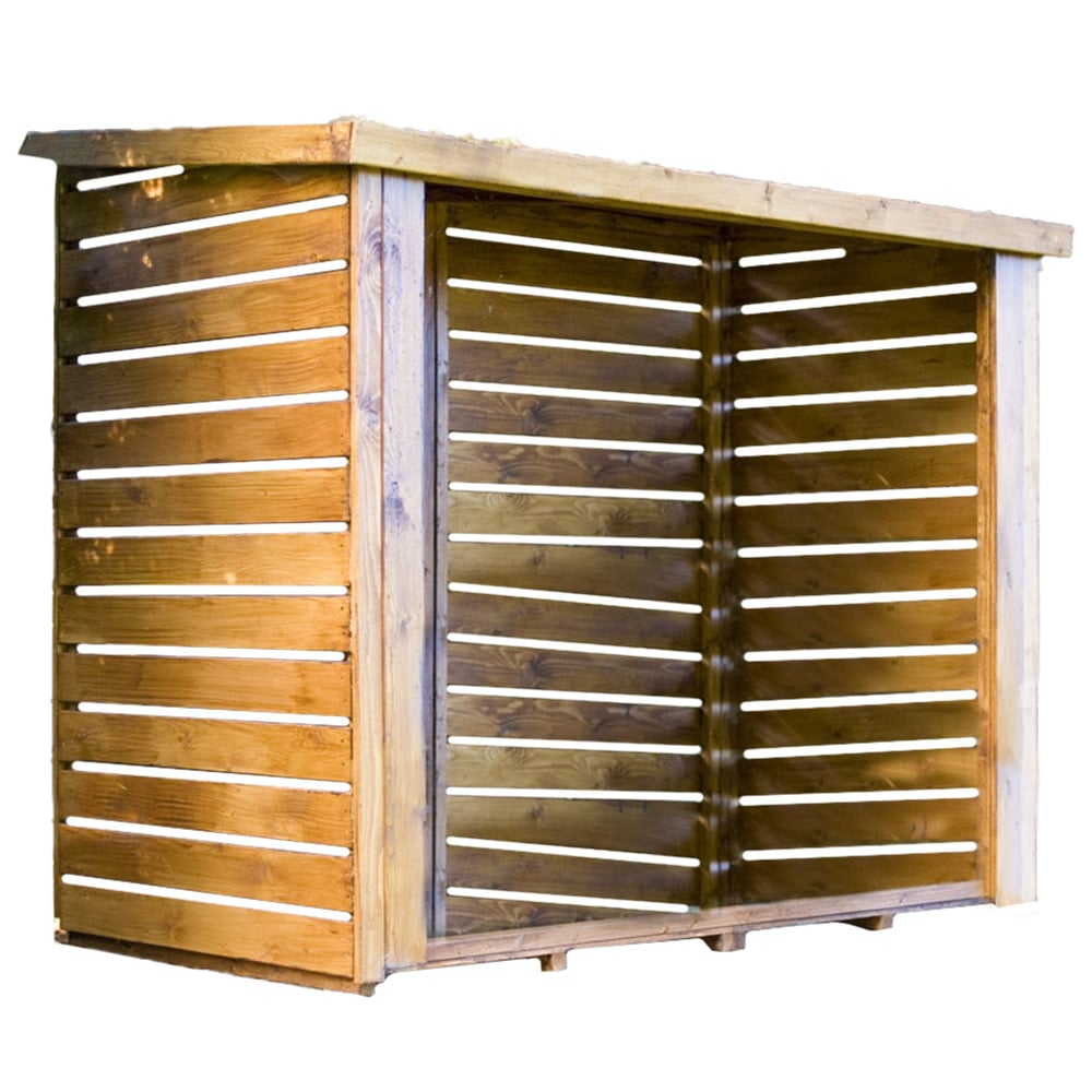 Ideal for keeping logs tidy and dry, this attractive log store features slatted sides and a raised floor to allow for air circulation and a timber roof to protect the logs against rain. A superb accessory for your log burner, fire pit or chiminea, the log store, with its rustic good looks, suits any patio or garden. Manufactured from high-grade FSC-certified shiplap timber and finished with a golden brown basecoat preservative treatment ready for your own choice of top coat. Please note the additional wooden bearers in the photograph are not supplied. It comes complete with fixings and installation instructions. Following your order, you will be sent a link to choose your delivery day. On the morning of the delivery day, you will also receive live tracking information.Note: Currently, we're unable to deliver this product to DG, TD, KA, ML, EH, G, PA, FK, KY, PH, DD, AB IV and KW areas. We regret the inconvenience and will keep you posted when it's available to order for the mentioned postcodes.