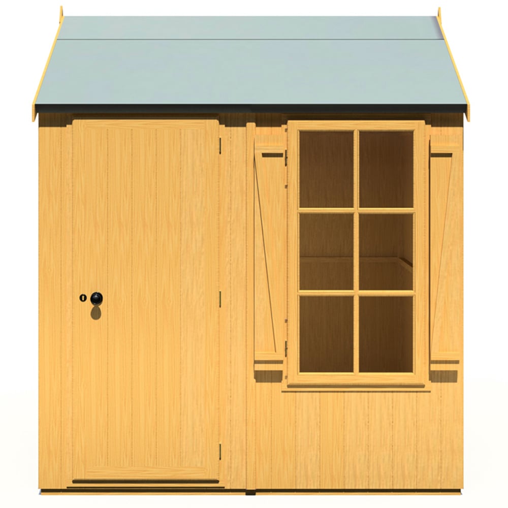 Make a stunning addition to your garden space with the Shire 7 x 7ft Pressure Treated Holt Apex Garden Shed. It is constructed with high-quality 12mm shiplap tongue and groove cladding and sturdy 34mm square framing. It includes an opening glass window for natural light and ventilation, with a single door equipped with a rim lock that can be positioned interchangeably with the window. The shed has solid sheet OSB roof boards and comes with mineral roof felt for exterior protection. This shed is dip-treated with a preservative base coat, allowing you to apply your preferred topcoat of paint or stain. Please note: Upon ordering, you will receive a link to select your delivery day, along with live tracking information on the morning of delivery. It is important to prepare a flat and level base of sufficient size before assembling the shed, as grass, soil, or gravel are not suitable bases due to their tendency to shift under the weight of the building. Delivery is available to most areas, but currently not to DG, TD, KA, ML, EH, G, PA, FK, KY, PH, DD, AB IV, and KW postcodes. We apologise for any inconvenience and will update you once delivery is possible to these areas.