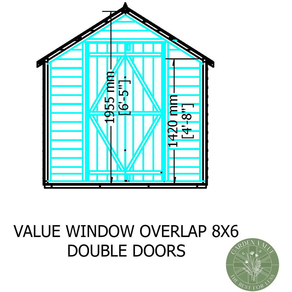 The 8 x 6ft Shire Overlap Wooden Shed with Window is incredible value for money. It is manufactured from high grade, slow grown, FSC approved, pine cladding boards over 34mm square framing, while the roof and floor are constructed from solid sheet OSB. The single door is fitted with a hasp and staple catch ready for your own padlock. The roof is finished with green mineral felt and the building is dip treated with a basecoat ready for top coating immediately after assembly. All fixings, roof felt and assembly instructions are provided. (Imperial dimensions are approximate to the nearest foot, please refer to the exact metric dimensions given).Note: Currently, we're unable to deliver this product to DG, TD, KA, ML, EH, G, PA, FK, KY, PH, DD, AB IV and KW areas. We regret the inconvenience and will keep you posted when it's available to order for the mentioned postcodes.