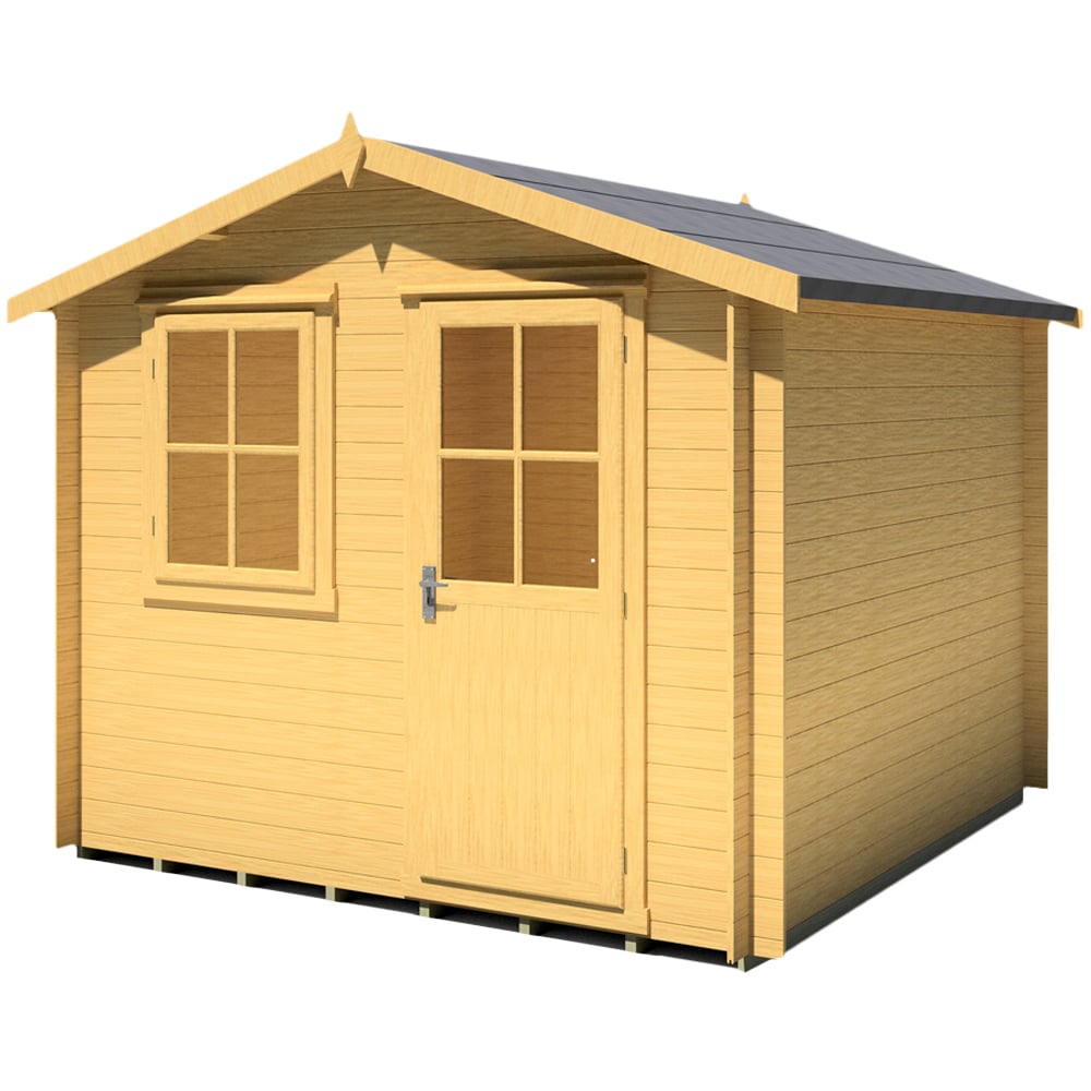 Transform your outdoor space with the Shire Avesbury 9 x 9ft Pressure Treated Wooden Log Cabin. This robust log cabin has fully framed single doors and a joinery-quality opening window. The cabin has a tongue and groove roof and floor with pressure-treated bearers. Also, its door and window positions are interchangeable. The door is framed with a pad bolt and features a full-length piano-style hinge to improve security. Its interlocking timbers make up the walls of the building, which are 19mm thick and some 50% thicker than a typical garden building. Also, its roof and floor are 12mm thick. The building is supplied untreated and ready for you to paint or stain immediately after assembly. Note - Its dimensions are critical. Please check internal (floor) sizes, as building dimensions are to the edge of the individual boards that make up the cabin, which will include the crossover of the logs. The internal eaves height is six inches (1825mm) for a spacious interior. Please note that log cabins are supplied as individual log boards assembled length by length and built from the floor, not pre-made panels. The building is manufactured in the UK, and all wood used is high-grade, FSC-approved Northern European Pine. Assembly instructions and mineral roof felt are included. You will be sent a link to choose the day of your delivery after your order. You will also receive live tracking information on the morning of delivery day. This cabin needs a base to sit on, flat and level to a sufficient size. Grass, soil or gravel are not enough as they will move with the weight of a building. Note: Currently, we're unable to deliver this product to DG, TD, KA, ML, EH, G, PA, FK, KY, PH, DD, AB IV and KW areas. We regret the inconvenience and will keep you posted when it's available to order for the mentioned postcodes.