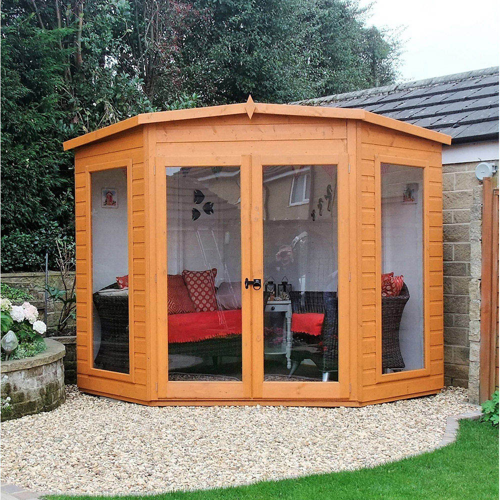 Make a fantastic addition to your garden with the Shire 7 x 7 feet Barclay Summerhouse Shed. The Barclay is a magnificent summer house designed to fill a corner of your garden. With its full height, styrene safety glazed windows and doors, this summerhouse lets in lots of light and is a delight to spend your time in. The roof and floor are both constructed from tongue and groove timber as you would expect from a quality building. This stunning shed will add style and perfectly beautify the outdoors. Note: Currently, we're unable to deliver this product to DG, TD, KA, ML, EH, G, PA, FK, KY, PH, DD, AB IV and KW areas. We regret the inconvenience and will keep you posted when it's available to order for the mentioned postcodes.