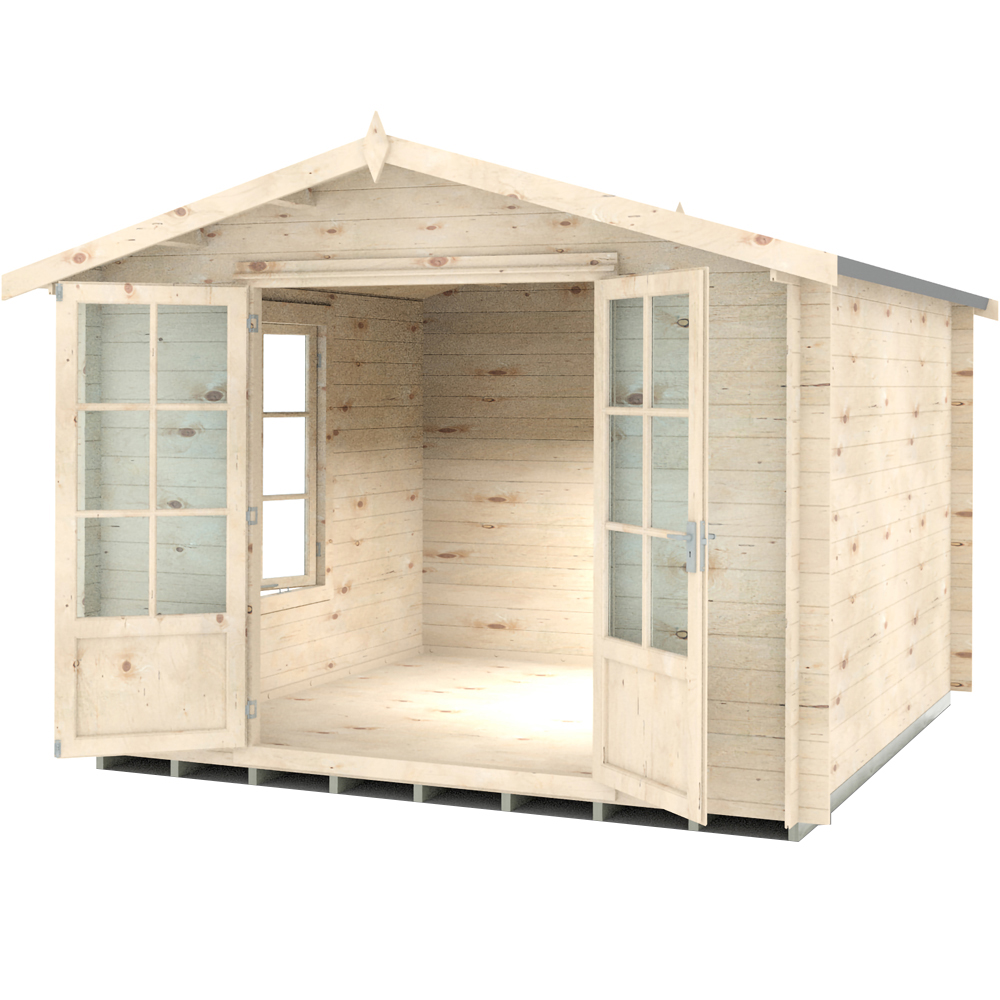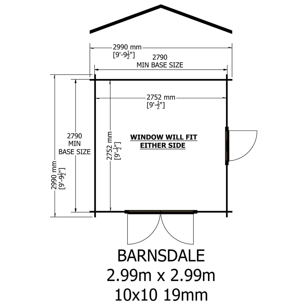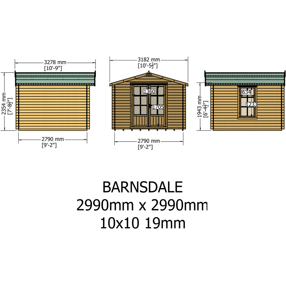 Transform your outdoor space with the Shire Barnsdale 10 x 10ft Double Door Log Cabin. This cabin has glazed double doors and a matching joinery quality, with an opening window that can go on either side. The cabin has a tongue and groove roof and floor with pressure-treated bearers. The lockable door also features a full-length piano-style hinge to improve security. The interlocking timbers that make up the walls of the building are 19mm thick, some 50% thicker than a typical garden building; the roof and floor are 12mm thick. The building is supplied untreated and ready for you to paint or stain immediately after assembly. Where dimensions are critical, please check internal (floor) sizes, as building dimensions are to the external edge of the individual boards that make up the cabin and will include the crossover of the logs. Internal eaves are over six inches (1825mm) for a spacious interior. Please note that log cabins are supplied as individual log boards assembled length by length and built from the floor, not pre-made panels. The building is manufactured here in the UK, and all wood used is high-grade, FSC-approved Northern European Pine. Assembly instructions and mineral roof felt are included. You will be sent a link to choose the day of your delivery after your order. You will also receive live tracking information on the morning of delivery day. This cabin needs a base to sit on, flat and level to a sufficient size. Grass, soil or gravel are not enough as they will move with the weight of a building. Note: Currently, we're unable to deliver this product to DG, TD, KA, ML, EH, G, PA, FK, KY, PH, DD, AB IV and KW areas. We regret the inconvenience and will keep you posted when it's available to order for the mentioned postcodes.