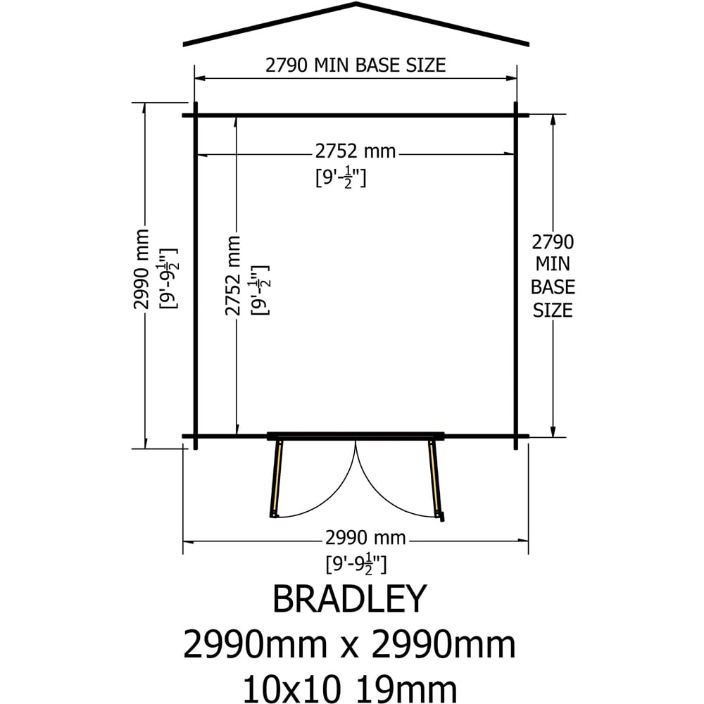 Transform your outdoor space with the Shire Bradley 10 x 10ft Double Door Pressure Treated Wooden Log Cabin. This robust log cabin has fully framed double doors, joinery quality, and an opening window. The cabin has a tongue and groove roof and floor with pressure-treated bearers. The door is framed with a pad bolt and features a full-length piano-style hinge to improve security. Its interlocking timbers make up the walls of the building, which are 19mm thick and some 50% thicker than a typical garden building. Also, its roof and floor are 12mm thick. The building is supplied untreated and ready for you to paint or stain immediately after assembly. Note - Its dimensions are critical. Please check internal (floor) sizes, as building dimensions are to the edge of the individual boards that make up the cabin, which will include the crossover of the logs. The internal eaves height is six inches (1825mm) for a spacious interior. Please note that log cabins are supplied as individual log boards assembled length by length and built from the floor, not pre-made panels. The building is manufactured in the UK, and all wood used is high-grade, FSC-approved Northern European Pine. Assembly instructions and mineral roof felt are included. You will be sent a link to choose the day of your delivery after your order. You will also receive live tracking information on the morning of delivery day. This cabin needs a base to sit on, flat and level to a sufficient size. Grass, soil or gravel are not enough as they will move with the weight of a building. Note: Currently, we're unable to deliver this product to DG, TD, KA, ML, EH, G, PA, FK, KY, PH, DD, AB IV and KW areas. We regret the inconvenience and will keep you posted when it's available to order for the mentioned postcodes.