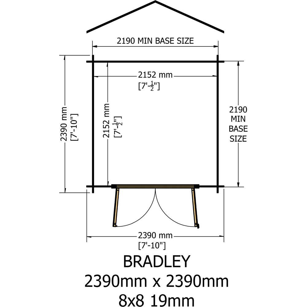 Transform your outdoor space with the Shire Bradley 8 x 8ft Double Door Pressure Treated Wooden Log Cabin. This robust log cabin has fully framed double doors, joinery quality, and an opening window. The cabin has a tongue and groove roof and floor with pressure-treated bearers. The door is framed with a pad bolt and features a full-length piano-style hinge to improve security. Its interlocking timbers make up the walls of the building, which are 19mm thick and some 50% thicker than a typical garden building. Also, its roof and floor are 12mm thick. The building is supplied untreated and ready for you to paint or stain immediately after assembly. Note - Its dimensions are critical. Please check internal (floor) sizes, as building dimensions are to the edge of the individual boards that make up the cabin, which will include the crossover of the logs. The internal eaves height is six inches (1825mm) for a spacious interior. Please note that log cabins are supplied as individual log boards assembled length by length and built from the floor, not pre-made panels. The building is manufactured in the UK, and all wood used is high-grade, FSC-approved Northern European Pine. Assembly instructions and mineral roof felt are included. You will be sent a link to choose the day of your delivery after your order. You will also receive live tracking information on the morning of delivery day. This cabin needs a base to sit on, flat and level to a sufficient size. Grass, soil or gravel are not enough as they will move with the weight of a building. Note: Currently, we're unable to deliver this product to DG, TD, KA, ML, EH, G, PA, FK, KY, PH, DD, AB IV and KW areas. We regret the inconvenience and will keep you posted when it's available to order for the mentioned postcodes.