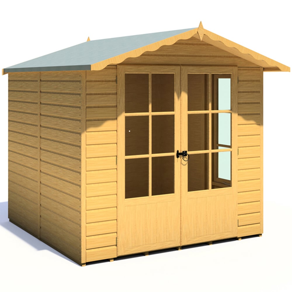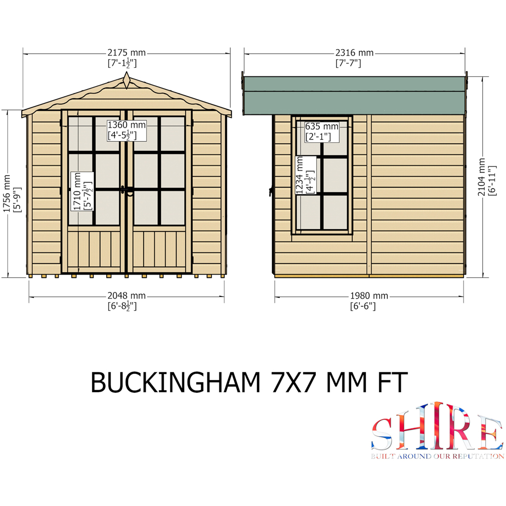 Make a fantastic addition to your garden with the Shire 7 x 7 feet Double Door Buckingham Summerhouse Shed. It is a perfect choice for all gardens for its unique style and storage capacity. The high-quality double doors open out to the front and its large attractive opening Georgian side window can be easily added on either side. This stunning shed will add style and perfectly beautify the outdoors.Note: Currently, we're unable to deliver this product to DG, TD, KA, ML, EH, G, PA, FK, KY, PH, DD, AB IV and KW areas. We regret the inconvenience and will keep you posted when it's available to order for the mentioned postcodes.