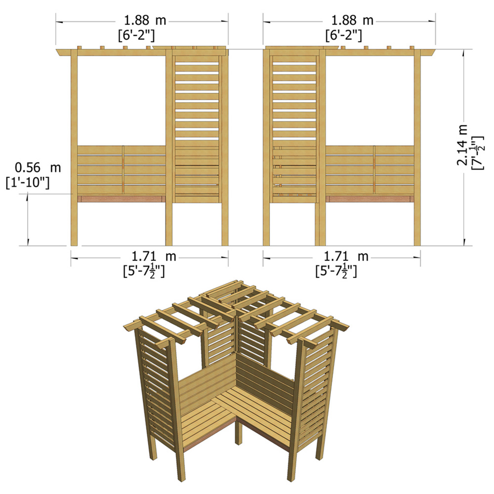 Spend your evenings in comfort with the Shire Clematis 6 x 6ft Pressure Treated Corner Arbour. This contemporary corner arbour provides stylish seating for your garden or patio. The arbour is pressure-treated for a long life and comes in its natural colour. This arbour is manufactured from high-grade, slow-grown, FSC-approved Northern European pine. Imperial dimensions are approximate to the nearest foot; please refer to the exact metric dimensions in the data given. Following your order, you will be sent a link to choose your delivery day. On the morning of delivery day, you will also receive live tracking information. Note: Currently, the product is not delivered to DG, TD, KA, ML, EH, G, PA, FK, KY, PH, DD, AB IV and KW areas. The inconvenience is regretted, and you will be updated when it's available to order for the mentioned postcodes. Protect your garden furniture with our durable and waterproof covers. Explore our wide range of heavy-duty