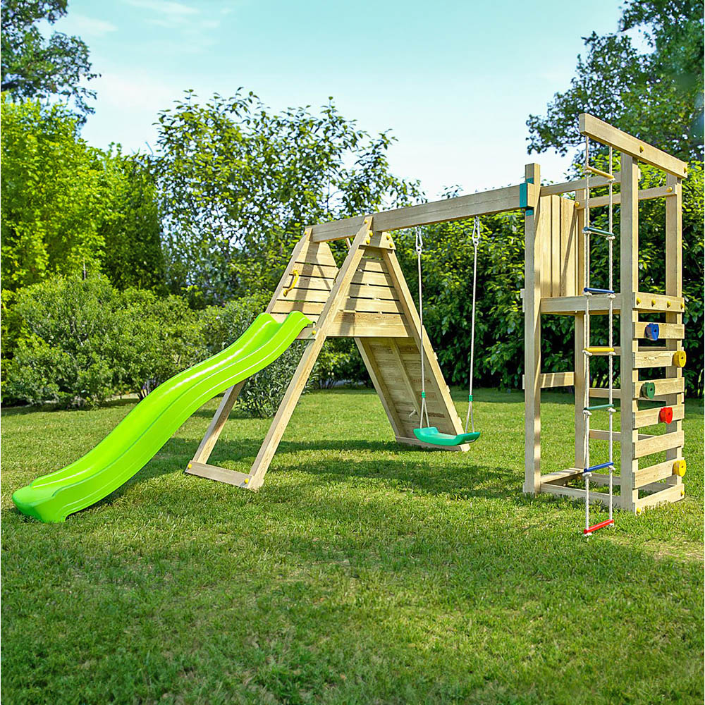 Embark on endless adventures with the Shire Climber Kids Wooden Multi Play Set Equipment. The play forts are the ultimate source of fun for your child, providing countless hours of entertainment. Made from pressure-treated softwood, the set is equipped with ground anchors for safe fixing. Designed to encourage outdoor play, the play forts are built to the highest standards, with safety as the top priority. Once you place your order, you will receive a link to select your delivery date. On the day of delivery, you will receive live tracking information to keep you updated. Note: Currently, the product is not delivered to DG, TD, KA, ML, EH, G, PA, FK, KY, PH, DD, AB IV and KW areas. The inconvenience is regretted, and you will be updated when it's available to order for the mentioned postcodes.