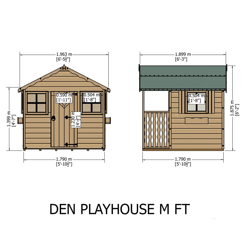 The Shire Den is packed with special design details creating a beautiful playhouse that will give many years of pleasure. It is very stylish with pretty criss-cross glazing and a small veranda complete with shaped balustrade railings ensuring this playhouse will always look good in your garden. Other design features are a glazed diamond shape window to the door, shaped fascia boards, two window boxes, a daisy door handle, shutters to the side windows and mock antique hinges. It is made from high-grade, FSC-approved, Northern European pine shiplap boards. It complies with BS EN71 the safety standard and carries the CE mark. It has safety features such as a full-length safety hinge and two fixed windows and two opening windows fitted with plastic safety glazing. The playhouse is finished in a honey brown base coat treatment ready for painting or staining after installation.Note: Currently, we're unable to deliver this product to DG, TD, KA, ML, EH, G, PA, FK, KY, PH, DD, AB IV and KW areas. We regret the inconvenience and will keep you posted when it's available to order for the mentioned postcodes.