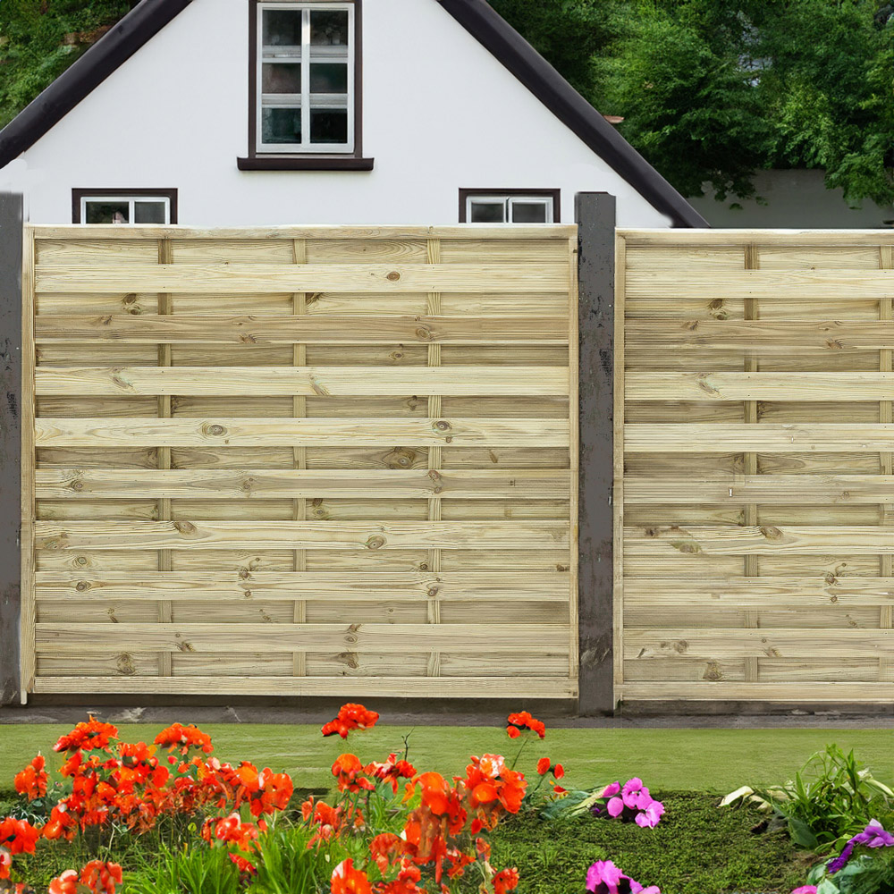 Make an elegant touch to your outdoor space with the Shire Elite Esprit 5ft Square Fence Panel. Crafted with sturdy horizontal slats that are planed, rounded, and grooved, they are securely fitted into a rebated frame. This panel with a square top offers a modern aesthetic and is pressure-treated to preserve the timber for an extended period. Please note that this European-sized panel measures 180cm in width. Delivery is available to most areas, but currently not to DG, TD, KA, ML, EH, G, PA, FK, KY, PH, DD, AB IV, and KW postcodes. We apologise for any inconvenience and will update you once delivery is possible to these areas.