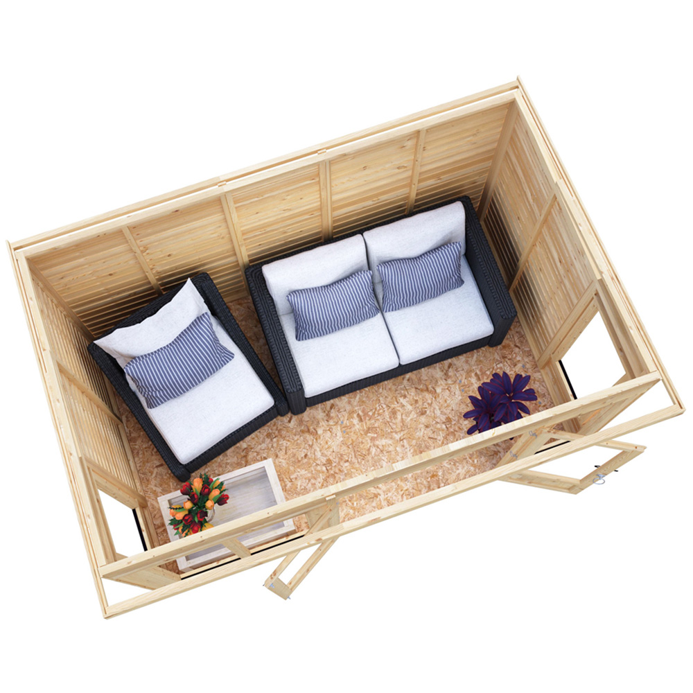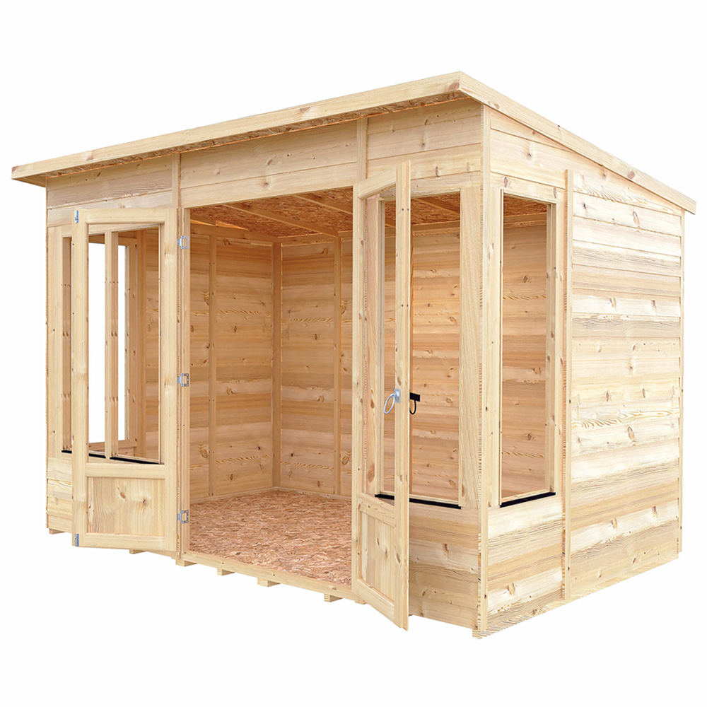 The stylish Alora Summerhouse is a wonderful addition to enhance your outdoor living. Features double doors to the front giving excellent access for furniture. This lovely pent-roof garden room is constructed from high-grade overlap cladding to the walls over 34mm strong framing with OSB floor and roof. Completed with acrylic safety glazing throughout. Dipped base coat preservative ready for you to top coat. Note: Currently, delivery of this product to the DG, TD, KA, ML, EH, G, PA, FK, KY, PH, DD, AB IV, and KW areas is not possible. Updates will be provided when the order becomes available for the specified postcodes.