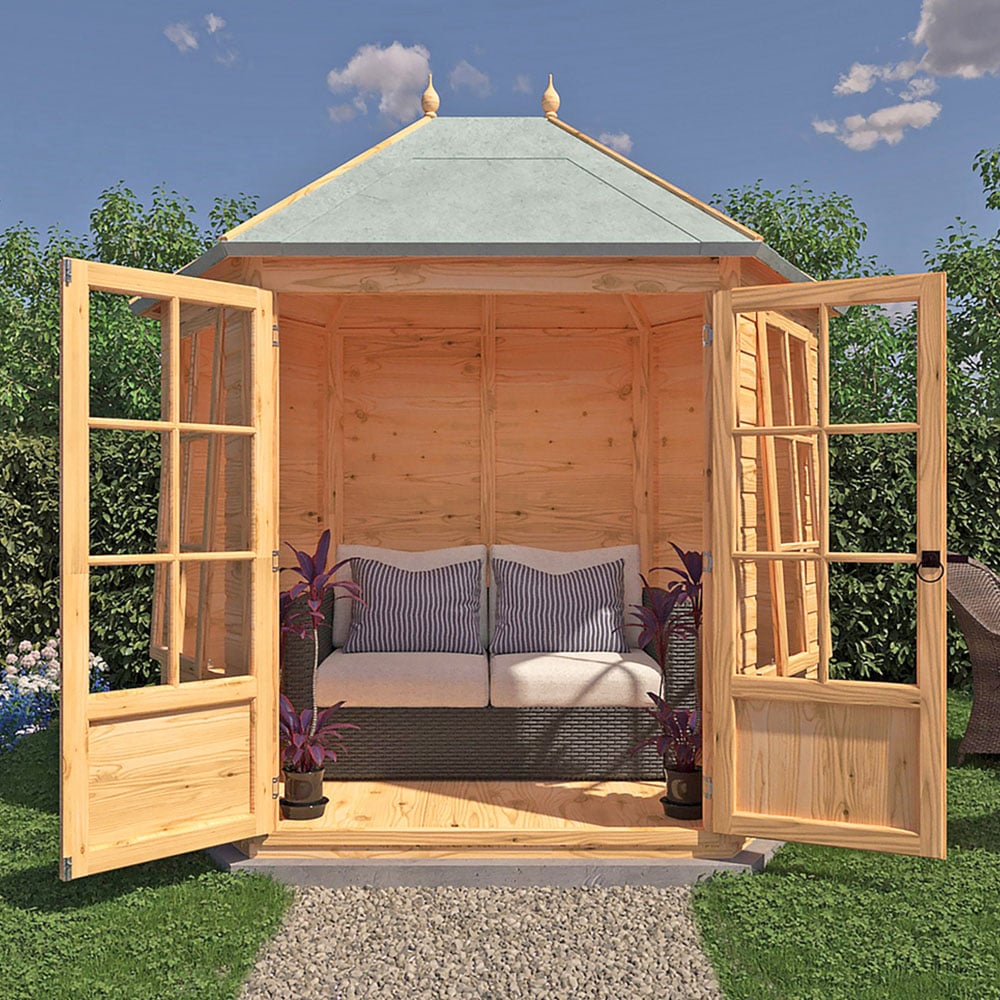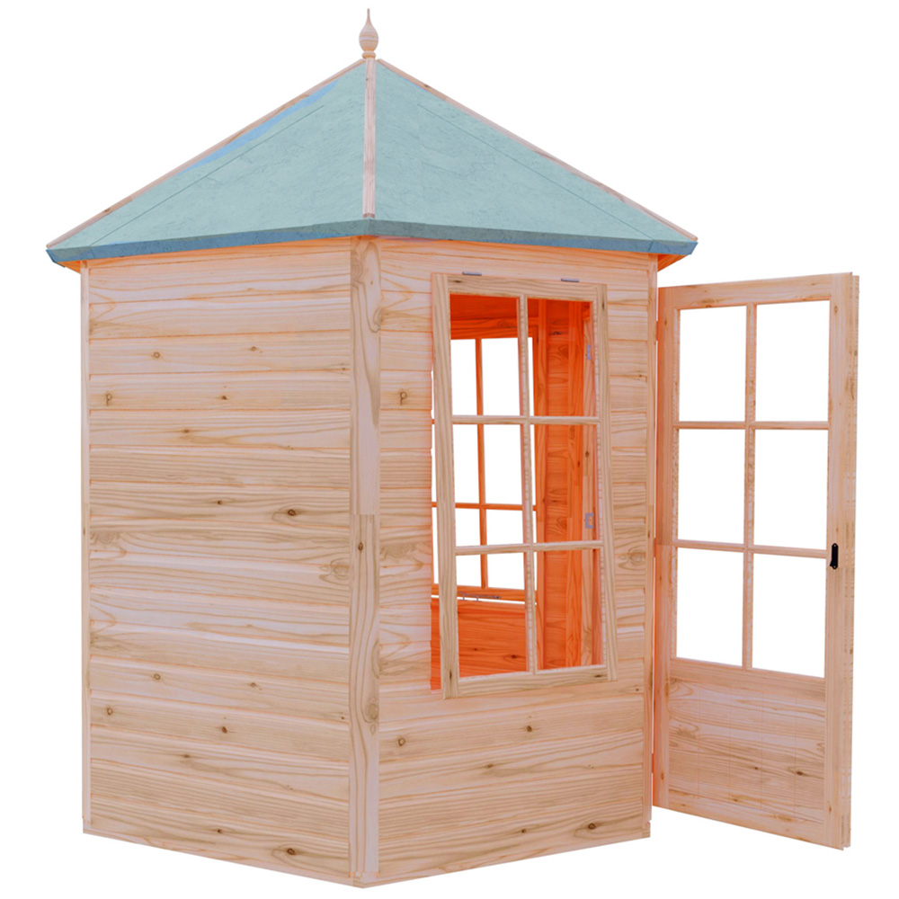 The attractively shaped Windermere Summerhouse gives you a lovely space to relax and makes a stylish feature too. With Georgian-style glazing, the summer house is constructed on 34mm square framing and clad with planed shiplap tongue and groove boards made only from the highest grade, slow-grown, FSC-approved northern European pine. The roof and floor are tongued and grooved timber. Two opening glass windows provide a welcome breeze. Dipped base coat preservative ready for you to top coat. Note: Currently, delivery of this product to the DG, TD, KA, ML, EH, G, PA, FK, KY, PH, DD, AB IV, and KW areas is not possible. Updates will be provided when the order becomes available for the specified postcodes.