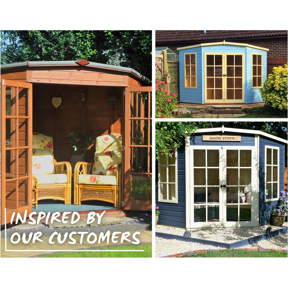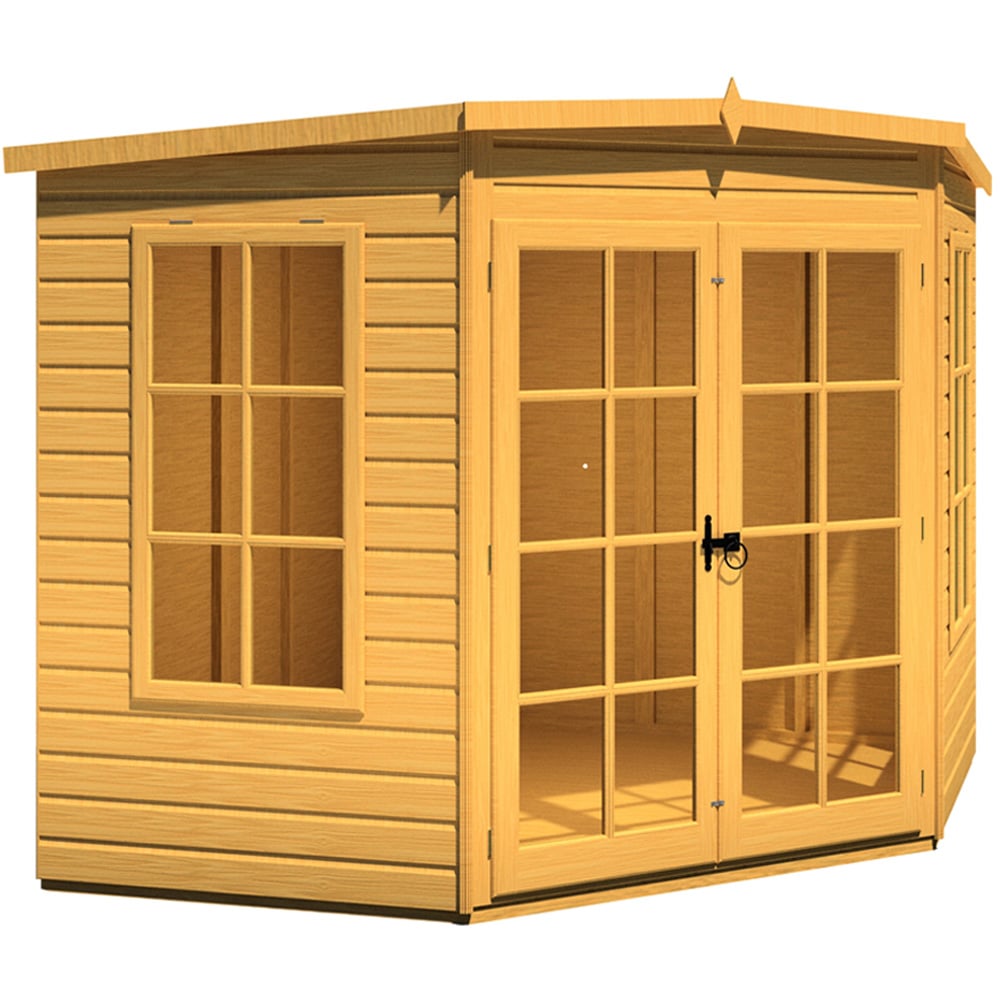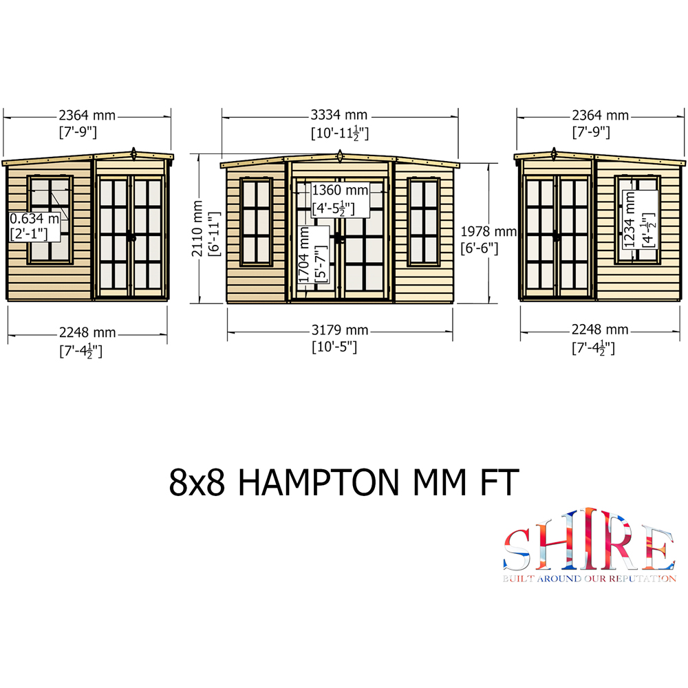 Make a fantastic addition to your garden with the Shire 8 x 8 feet Hampton Summerhouse Shed. The Hampton summerhouse is the finest way to make the most of a boring part of the garden or patio. Designed to fit neatly into the corner, the Hampton makes a perfect retreat. The roof and floor are both constructed from tongue and groove timber as you would expect from a quality building. The building has two joinery-quality opening windows to let in sufficient light and make a perfect room for quality time. Note: Currently, we're unable to deliver this product to DG, TD, KA, ML, EH, G, PA, FK, KY, PH, DD, AB IV and KW areas. We regret the inconvenience and will keep you posted when it's available to order for the mentioned postcodes.