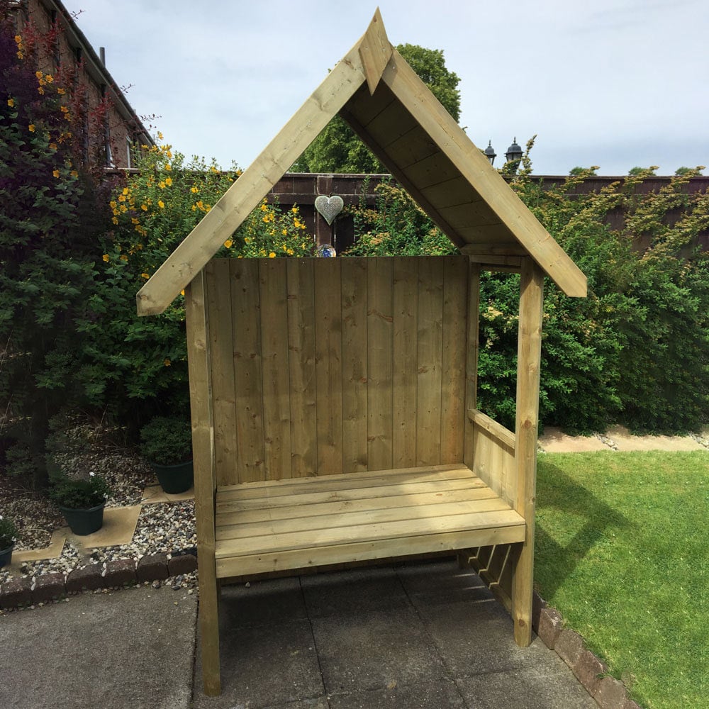 Elevate your garden space with the Shire Hebe 2 Seater 7 x 4 x 2ft Pressure Treated Arbour. This attractive garden feature has a timber-clad, apex roof and is manufactured in the UK from High Northern European FSC certified for longer life. It has a sturdy frame with open sides enabling you to relax and admire your garden. Easy to assemble, the arbour is supplied in its natural pressure-treated finish. Note: Currently, we're unable to deliver this product to DG, TD, KA, ML, EH, G, PA, FK, KY, PH, DD, AB IV and KW areas. We regret the inconvenience and will keep you posted when it's available to order for the mentioned postcodes. Protect your garden furniture with our durable and waterproof covers. Explore our wide range of heavy-duty