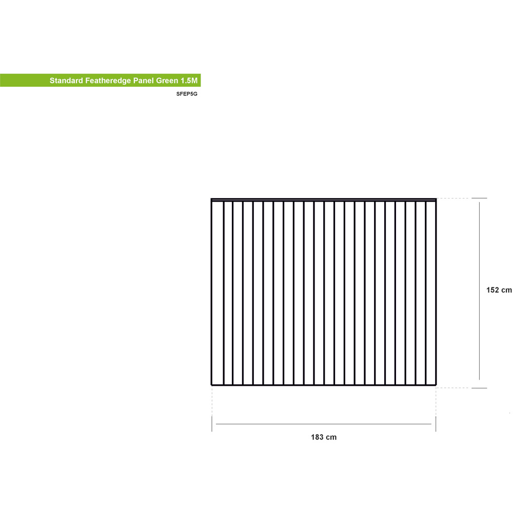 Upgrade your outdoor space with the Shire Standard Featheredge 5 x 6ft Pressure Treated Green Vertical Fence Panel. Manufactured in a sturdy 45mm thick rebated frame, the heavy-duty panel features 100mm featheredge boards and capping rail. The capping rail also adds to the overall look of the panel, creating a clean and seamless finish. This fence panel is built to last, ensuring that your garden or outdoor space remains secure and private for years to come. The panel is perfect for anyone looking for a high-quality and long-lasting fencing solution. Whether you're looking to add some privacy to your garden, secure your outdoor space, or simply add a beautiful feature to your property, the fence panel is the perfect choice. Note: Currently, the product cannot be delivered to DG, TD, KA, ML, EH, G, PA, FK, KY, PH, DD, AB IV and KW areas. The inconvenience is regretted, and you will be updated when it's available to order for the mentioned postcodes.