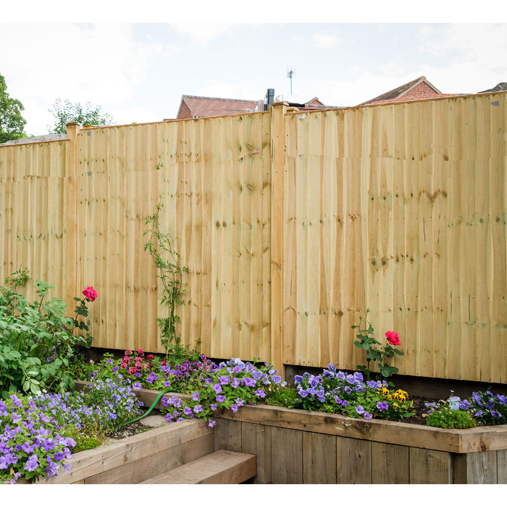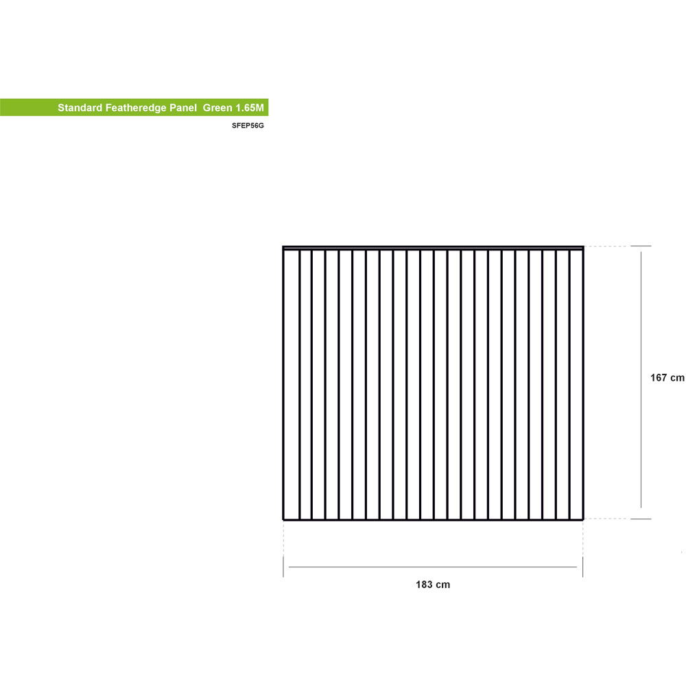 Upgrade your outdoor space with the Shire Standard Featheredge 5.4 x 6ft Pressure Treated Green Vertical Fence Panel. Manufactured in a sturdy 45mm thick rebated frame, the heavy-duty panel features 100mm featheredge boards and capping rail. The capping rail also adds to the overall look of the panel, creating a clean and seamless finish. This fence panel is built to last, ensuring that your garden or outdoor space remains secure and private for years to come. The panel is perfect for anyone looking for a high-quality and long-lasting fencing solution. Whether you're looking to add some privacy to your garden, secure your outdoor space, or simply add a beautiful feature to your property, the fence panel is the perfect choice. Note: Currently, the product cannot be delivered to DG, TD, KA, ML, EH, G, PA, FK, KY, PH, DD, AB IV and KW areas. The inconvenience is regretted, and you will be updated when it's available to order for the mentioned postcodes.